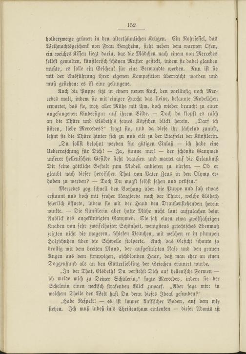 „In der That, Elsbeth! Du verstehst Dich auf hellenische Formen — ich melde mich zu Deiner Schülerin," sagte Mercedes, indem sie der Schelmin einen neckisch strafenden Blick zuwarf. „Aber sage mir: in welchem Theile der Welt hast Du denn dieses Ideal gefunden?"