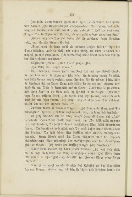 Tante Anna wandte sich dann zu den Andern: „Ich weiß doch nicht, ob ich nicht noch Eine von Euch ausschließen muß? Hat Adele ihren Muthwillen in letzter Zeit eingeschränkt? Hat Jemand Klage wider sie zu führen?"