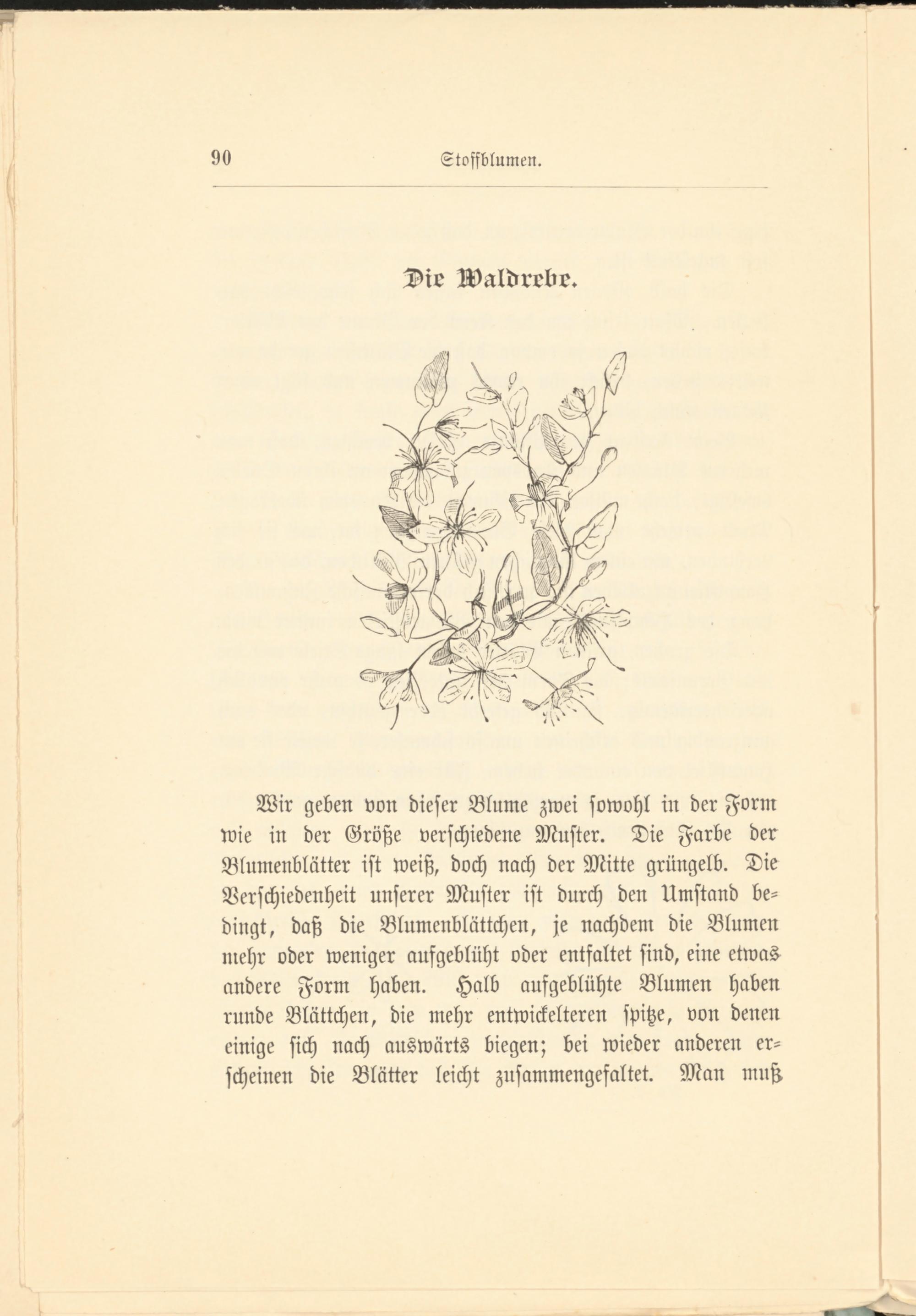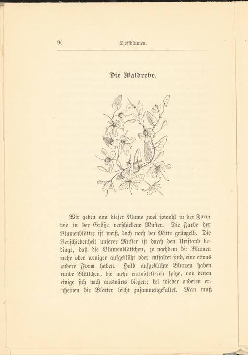 Wir geben von dieser Blume zwei sowohl in der Form wie in der Größe verschiedene Muster. Die Farbe der Blumenblätter ist weiß, doch nach der Mitte grüngelb. Die Verschiedenheit unserer Muster ist durch den Umstand bedingt, daß die Blumenblättchen, je nachdem die Blumen mehr oder weniger aufgeblüht oder entfaltet sind, eine etwas andere Form haben. Halb aufgeblühte Blumen haben runde Blättchen, die mehr entwickelteren spitze, von denen einige sich nach auswärts biegen; bei wieder anderen erscheinen die Blätter leicht zusammengefaltet. Man muß