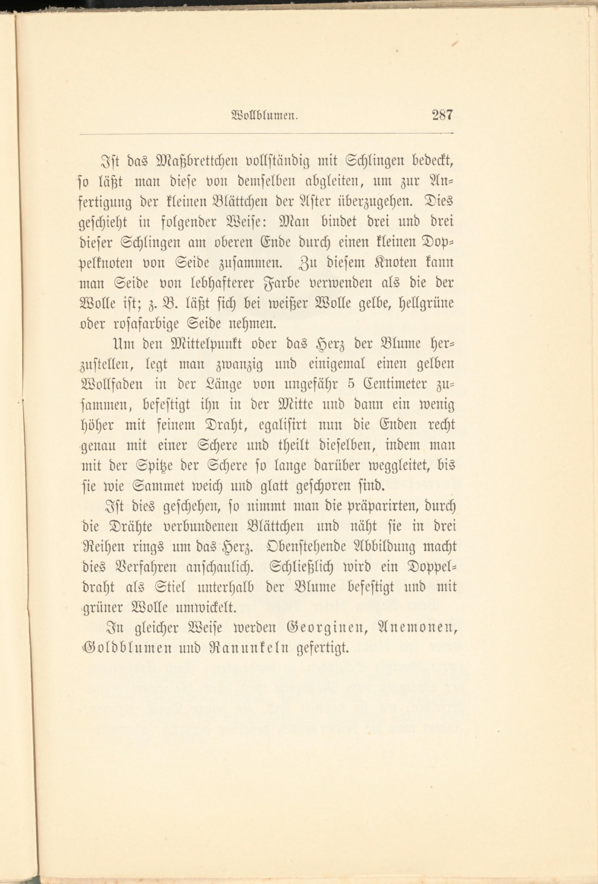 In gleicher Weise werden Georginen, Anemonen, -Goldblumen und Ranunkeln gefertigt.
