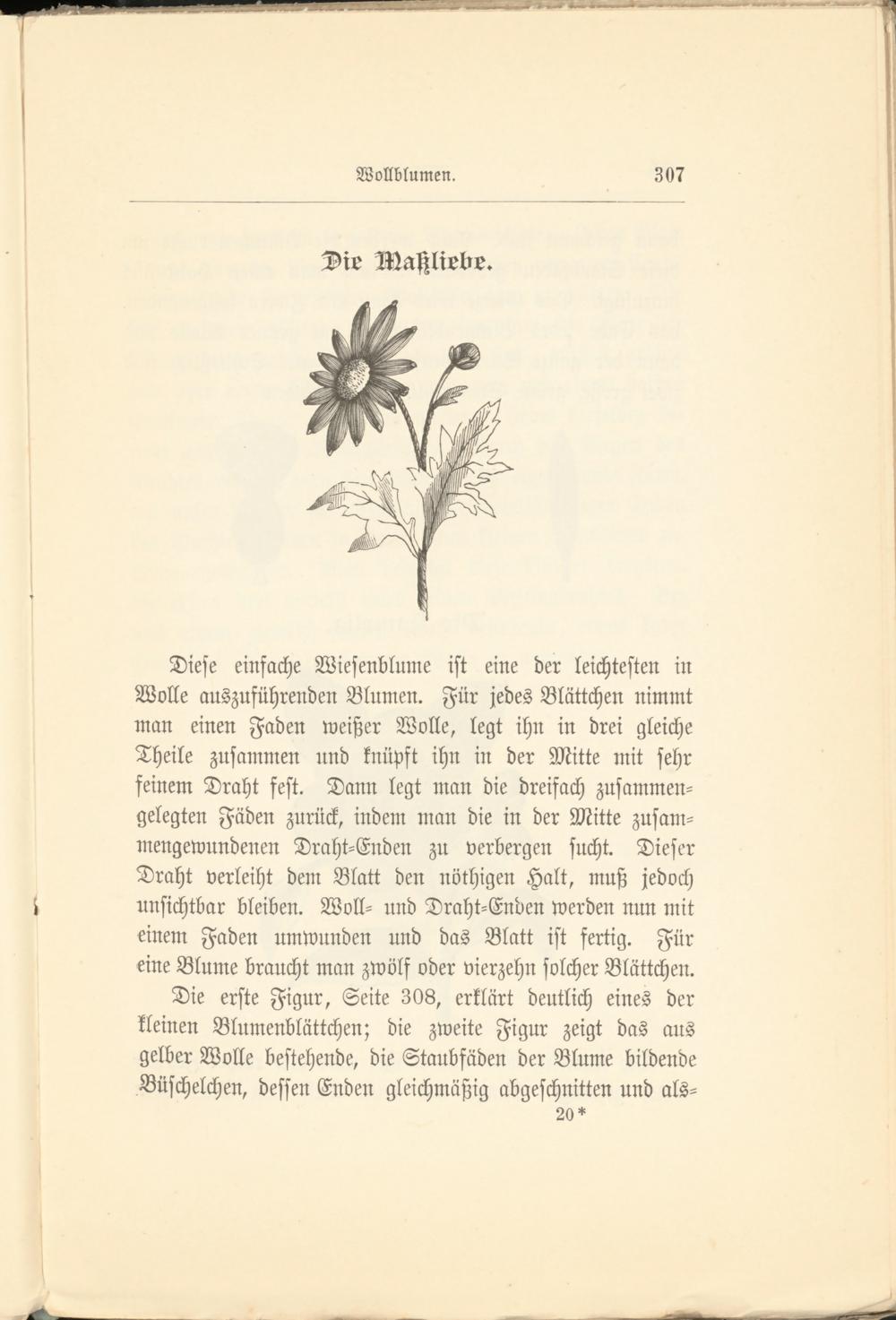 Die erste Figur, Seite 308, erklärt deutlich eines der kleinen Blumenblättchen; die zweite Figur zeigt das aus gelber Wolle bestehende, die Staubfäden der Blume bildende Büschelchen, dessen Enden gleichmäßig abgeschnitten und als-