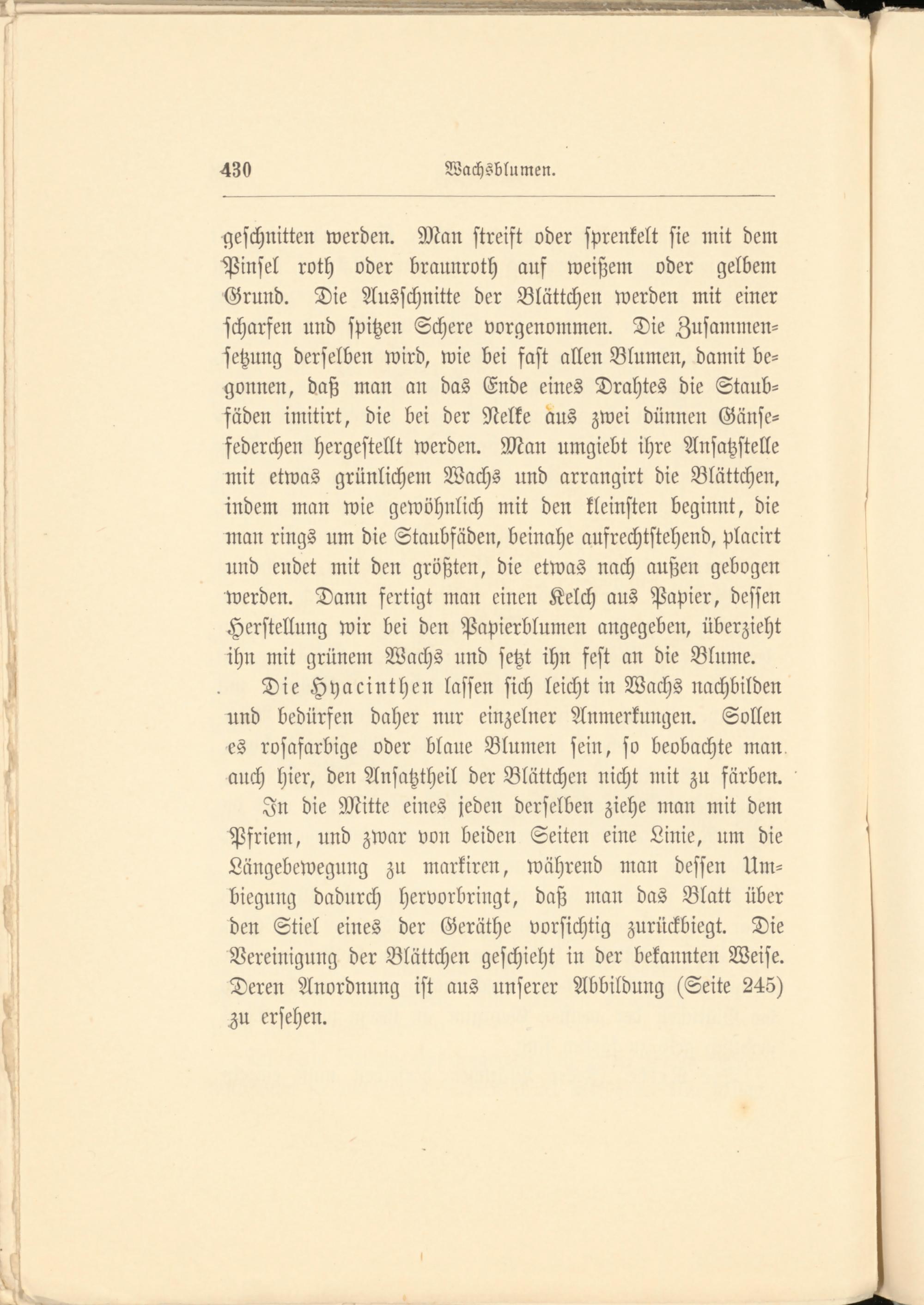 Die Hyacinthen lassen sich leicht in Wachs nachbilden und bedürfen daher nur einzelner Anmerkungen. Sollen es rosafarbige oder blaue Blumen sein, so beobachte man auch hier, den Ansatztheil der Blättchen nicht mit zu färben.