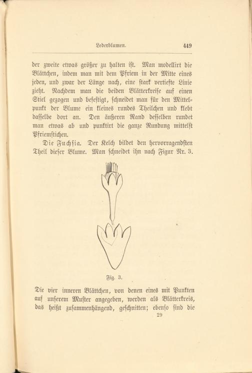 Die Fuchsia. Der Kelch bildet den hervorragendsten Theil dieser Blume. Man schneidet ihn nach Figur Nr. 3.