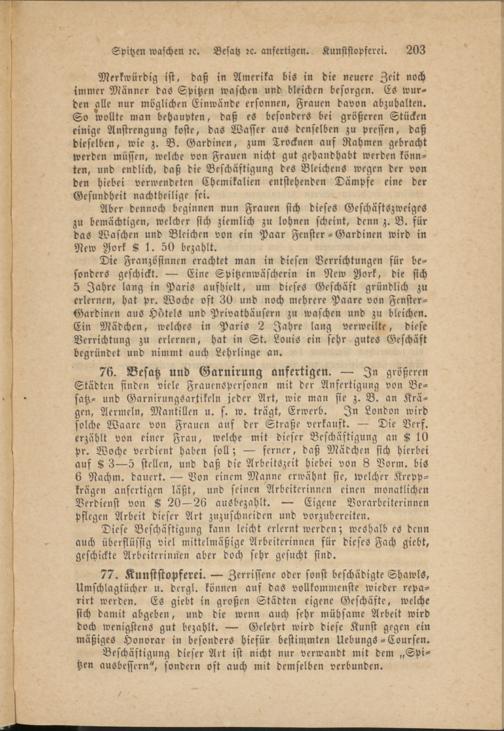 Spitzen waschen rc. Besatz rc. anfertigen. Kunststopferei. 203