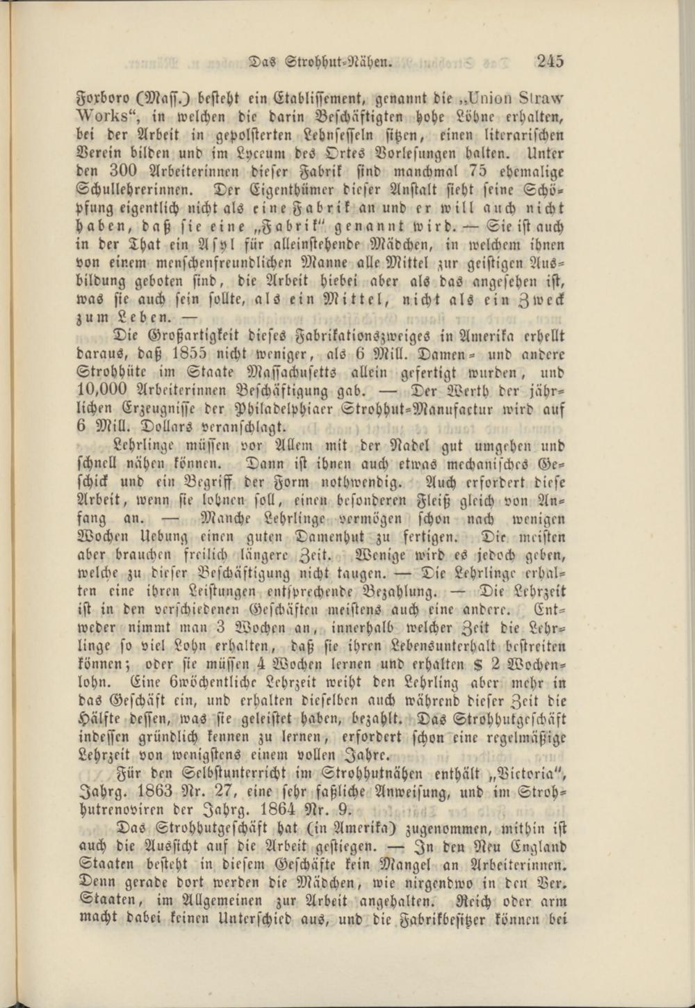 Für den Selbstunterricht im Strohhutnähen enthält „Victoria", Zahrg. 1863 Nr. 27, eine sehr faßliche Anweisung, und im Stroh- hutrenoviren der Jahrg. 1864 Nr. 9.