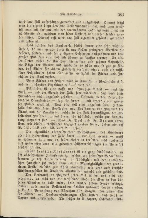 Die eigentliche obenbeschriebene Beschäftigung des Kürschners oder die Zubereitung der Felle findet — der Verf. gemäß — meist im Sommer statt und es sollen bisher in derselben nicht sonderlich viel Frauenspersonen mit gedachten HilfSverrichtungen (in Amerika) beschäftigt sein.