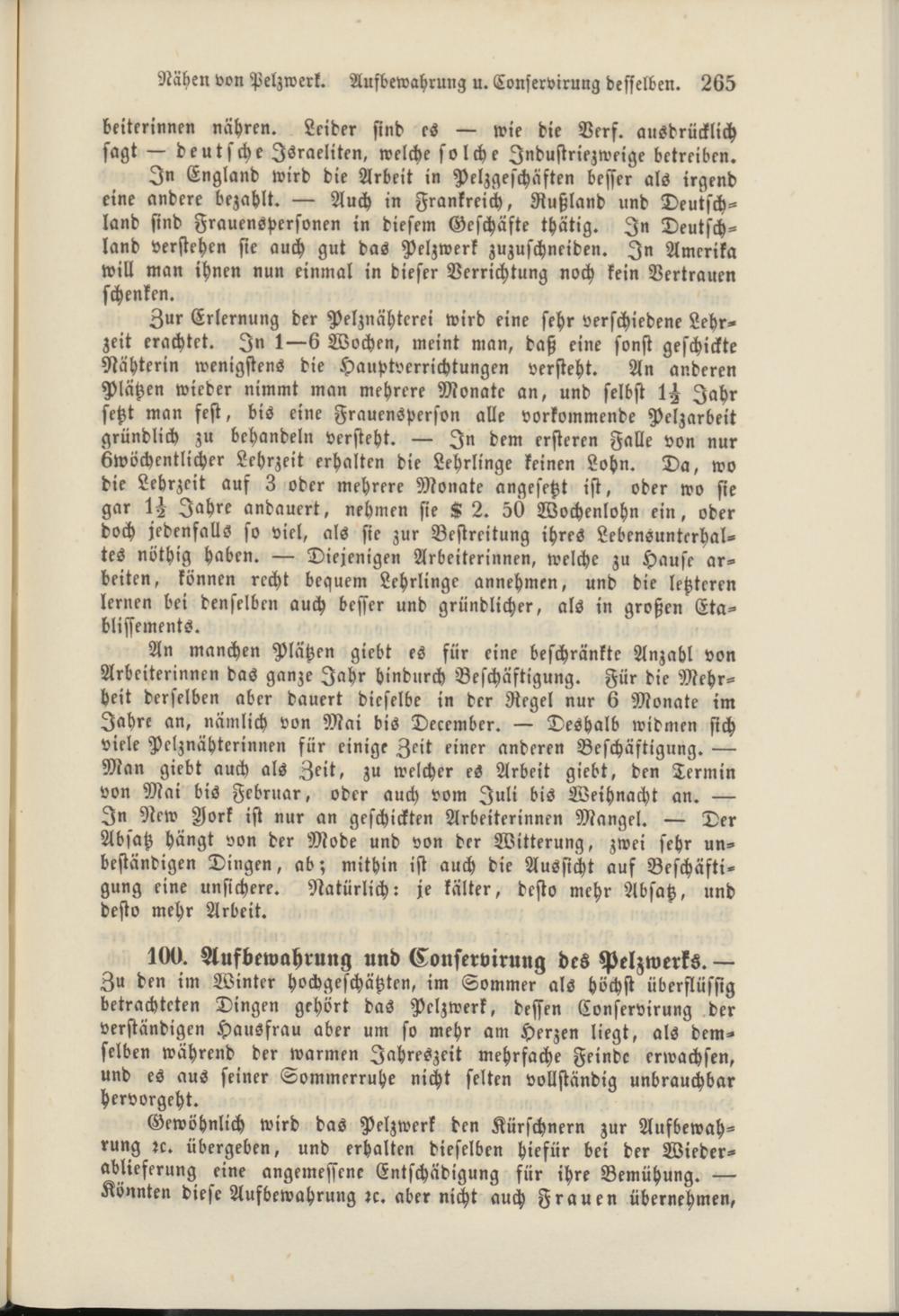 Nähen von Pelzwerk. Aufbewahrung u. Conservirung desselben. 265