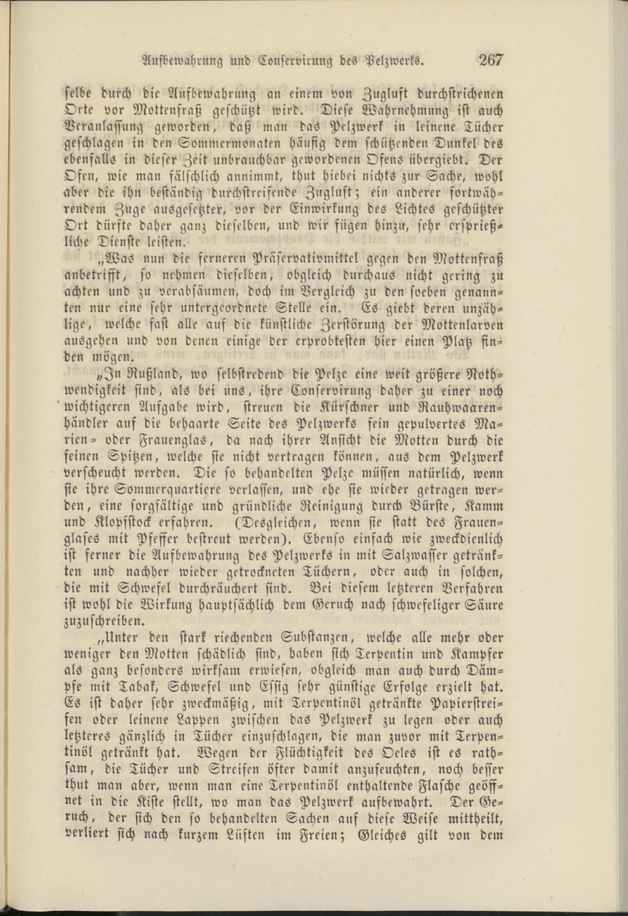 Aufbewahrung und Conservirung des Pelzwerks. 267