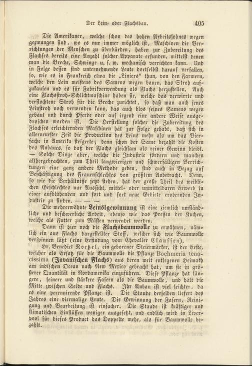Dann ist hier noch die Flachsbaumwolle zu erwähnen, nämlich ein aus Flachs dargestellter Stoff, welcher sich wie Baumwolle verspinnen läßt (eine Erfindung vom Chevalier Cl aussen).