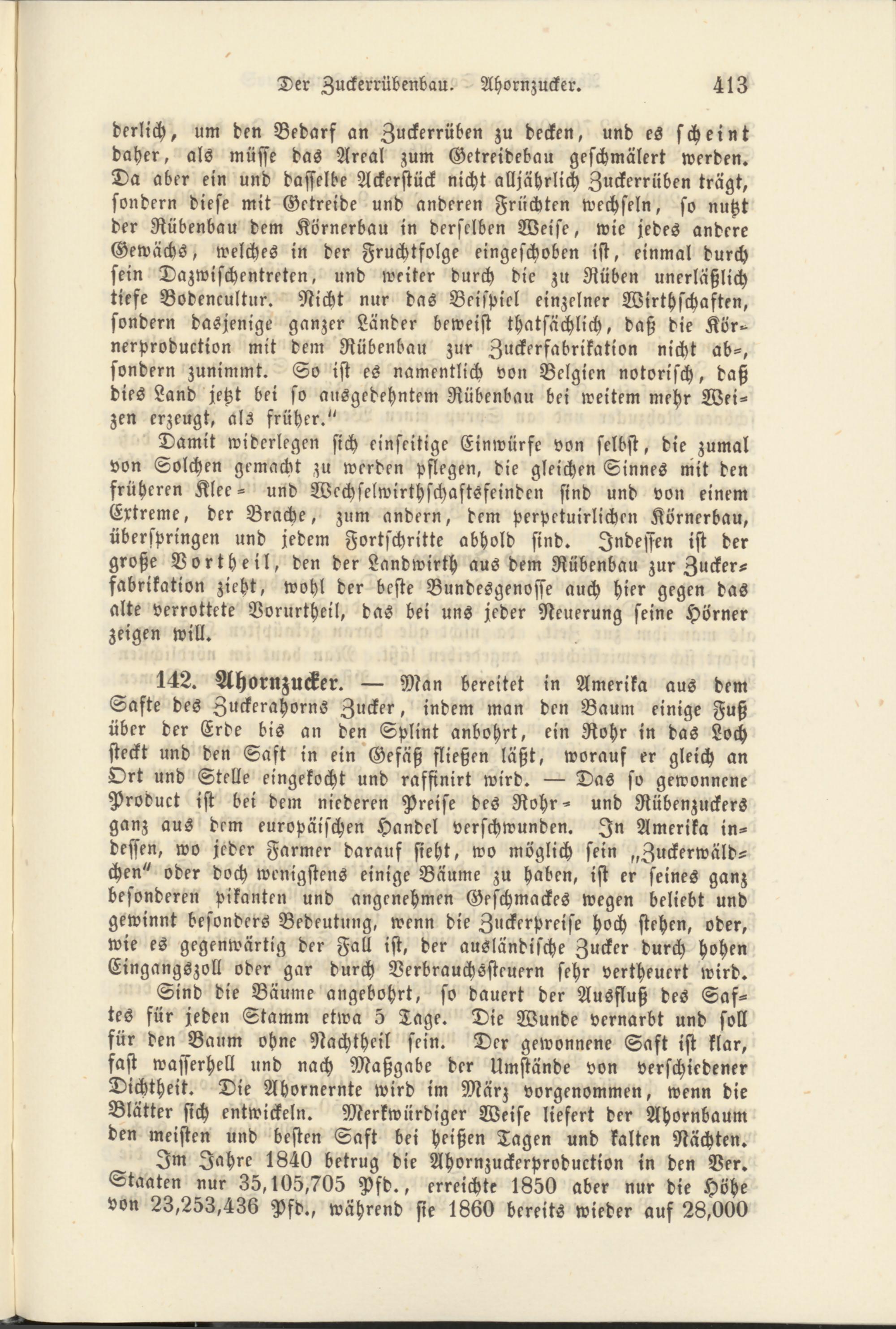 Im Jahre 1840 betrug die Ahornzuckerproduction in den Ver. Staaten nur 35,105,705 Pfd., erreichte 1850 aber nur die Höhe von 23,253,436 Pfd., während sie 1860 bereits wieder auf 28,000