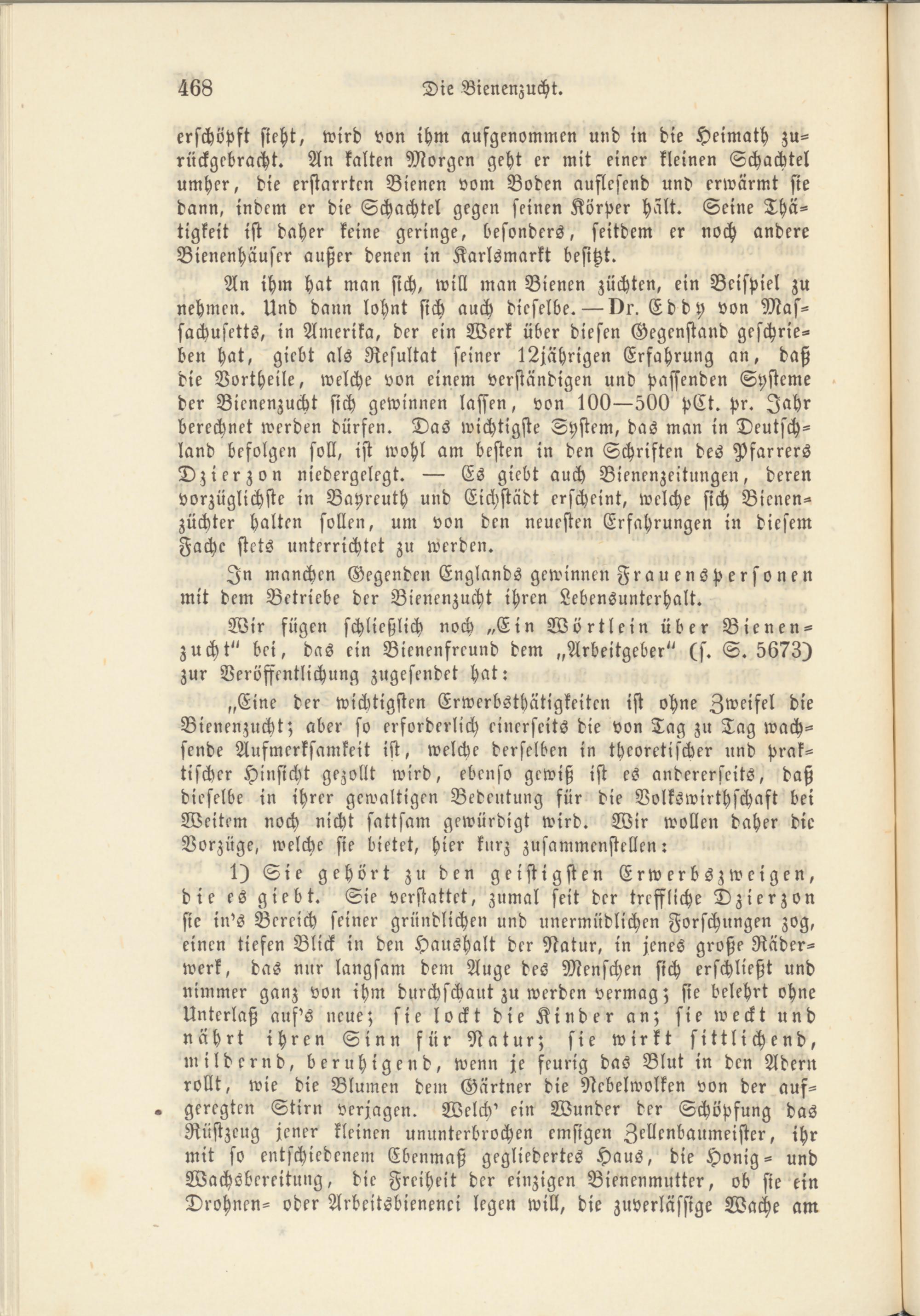 Wir fügen schließlich noch „Ein Wörtlein über Bienenzucht" bei, das ein Bienenfreund dem „Arbeitgeber" (s. S. 5673) zur Veröffentlichung zugesendet hat: