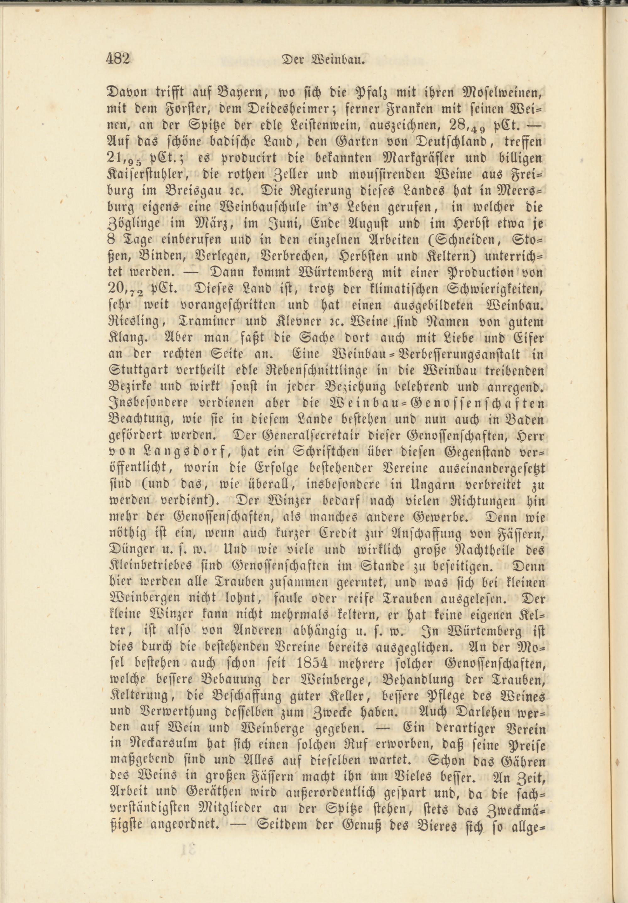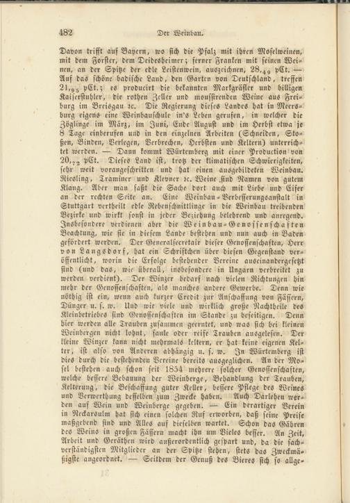 Davon trifft auf Bayern, wo sich die Pfalz mit ihren Moselweinen, mit dem Förster, dem Deidesheimer; ferner Franken mit seinen Weinen, an der Spitze der edle Leistenwein, auszeichnen, 28,pCt. — Auf das schöne badische Land, den Garten von Deutschland, treffen 2l'9ü P§t.; es producirt die bekannten Markgräfler und billigen Kaiserstuhler, die rothen Zelter und moussirenden Weine aus Frei- burg im Breisgau rc. Die Regierung dieses Landes hat in Meersburg eigens eine Weinbauschule in's Leben gerufen, in welcher die Zöglinge im März, im Juni, Ende August und im Herbst etwa je 8 Tage einberufen und in den einzelnen Arbeiten (Schneiden, Stoßen, Binden, Verlegen, Verbrechen, Herbsten und Keltern) unterrichtet werden. — Dann kommt Würtemberg mit einer Produktion von 20,72 pEt. Dieses Land ist, trotz der klimatischen Schwierigkeiten, sehr weit vorangeschritten und hat einen ausgebildeten Weinbau. Riesling, Traminer und Klevncr rc. Weine.sind Namen von gutem Klang. Aber man faßt die Sache dort auch mit Liebe und Eifer an der rechten Seite an. Eine Weinbau - Verbesserungsanstalt in Stuttgart vertheilt edle Rebenschnittlinge in die Weinbau treibenden Bezirke und wirkt sonst in jeder Beziehung belehrend und anregend. Insbesondere verdienen aber die Weinbau-Genossenschaften Beachtung, wie sie in diesem Lande bestehen und nun auch in Baden gefördert werden. Der Generalsecretair dieser Genossenschaften, Herr von Längs dorf, hat ein Schriftchen über diesen Gegenstand veröffentlicht, worin die Erfolge bestehender Vereine auseinandergesetzt sind (und das, wie überall, insbesondere in Ungarn verbreitet zu werden verdient). Der Winzer bedarf nach vielen Richtungen hin mehr der Genossenschaften, als manches andere Gewerbe. Denn wie nöthig ist ein, wenn auch kurzer Credit zur Anschaffung von Fässern, Dünger u. s. w. Und wie viele und wirklich große Nachtheile des Kleinbetriebes sind Genossenschaften im Stande zu beseitigen. Denn hier werden alle Trauben zusammen geerntet, und was sich bei kleinen Weinbergen nicht lohnt, faule oder reife Trauben ausgelesen. Der kleine Winzer kann nicht mehrmals keltern, er hat keine eigenen Kelter, ist also von Anderen abhängig u. s. w. In Würtemberg ist dies durch die bestehenden Vereine bereits ausgeglichen. An der Mosel bestehen auch schon seit 1854 mehrere solcher Genossenschaften, welche bessere Bebauung der Weinberge, Behandlung der Trauben, Kelterung, die Beschaffung guter Keller, bessere Pflege des Weines und Verwerthung desselben zum Zwecke haben. Auch Darlehen werden auf Wein und Weinberge gegeben. — Ein derartiger Verein in Neckarsulm hat sich einen solchen Ruf erworben, daß seine Preise maßgebend sind und Alles auf dieselben wartet. Schon das Gähren des Weins in großen Fässern macht ihn um Vieles besser. An Zeit, Arbeit und Geräthen wird außerordentlich gespart und, da die sachverständigsten Mitglieder an der Spitze stehen, stets das Zweckmäßigste angeordnet. — Seitdem der Genuß des Bieres sich so allge-