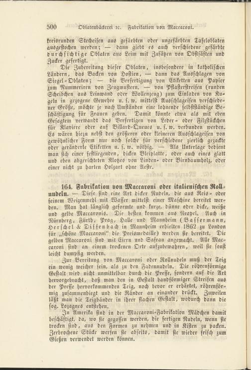 500 Oblatenbäckerei rc. Fabrikation von Maccaroni.