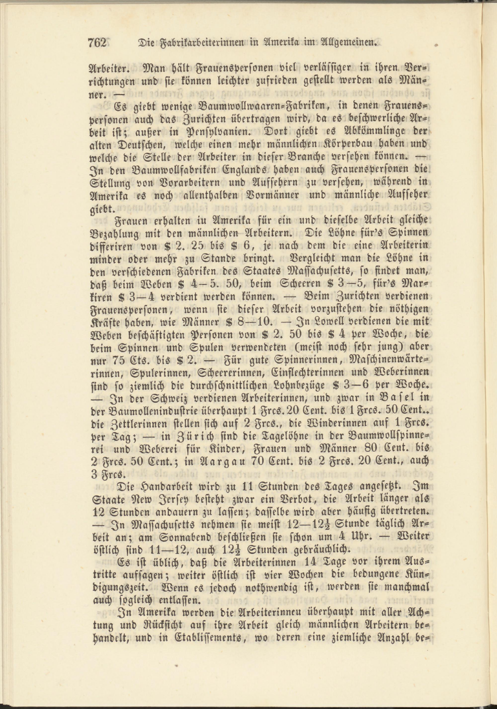 In Amerika werden die Arbeiterinnen überhaupt mit aller Achtung und Rücksicht auf ihre Arbeit gleich männlichen Arbeitern behandelt, und in Etablissements, wo deren eine ziemliche Anzahl be-