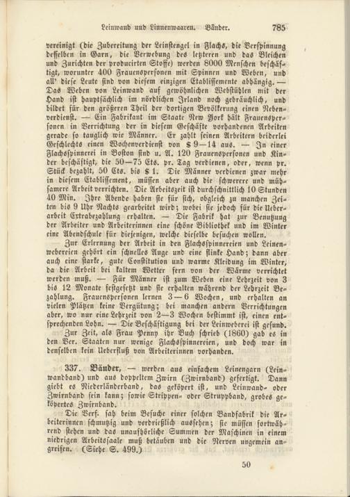 Zur Zeit, als Frau Penny ihr Buch schrieb (1860) gab es in den Ver. Staaten nur wenige Flachsspinnereien, und doch war in denselben kein Ueberfluß von Arbeiterinnen vorhanden.