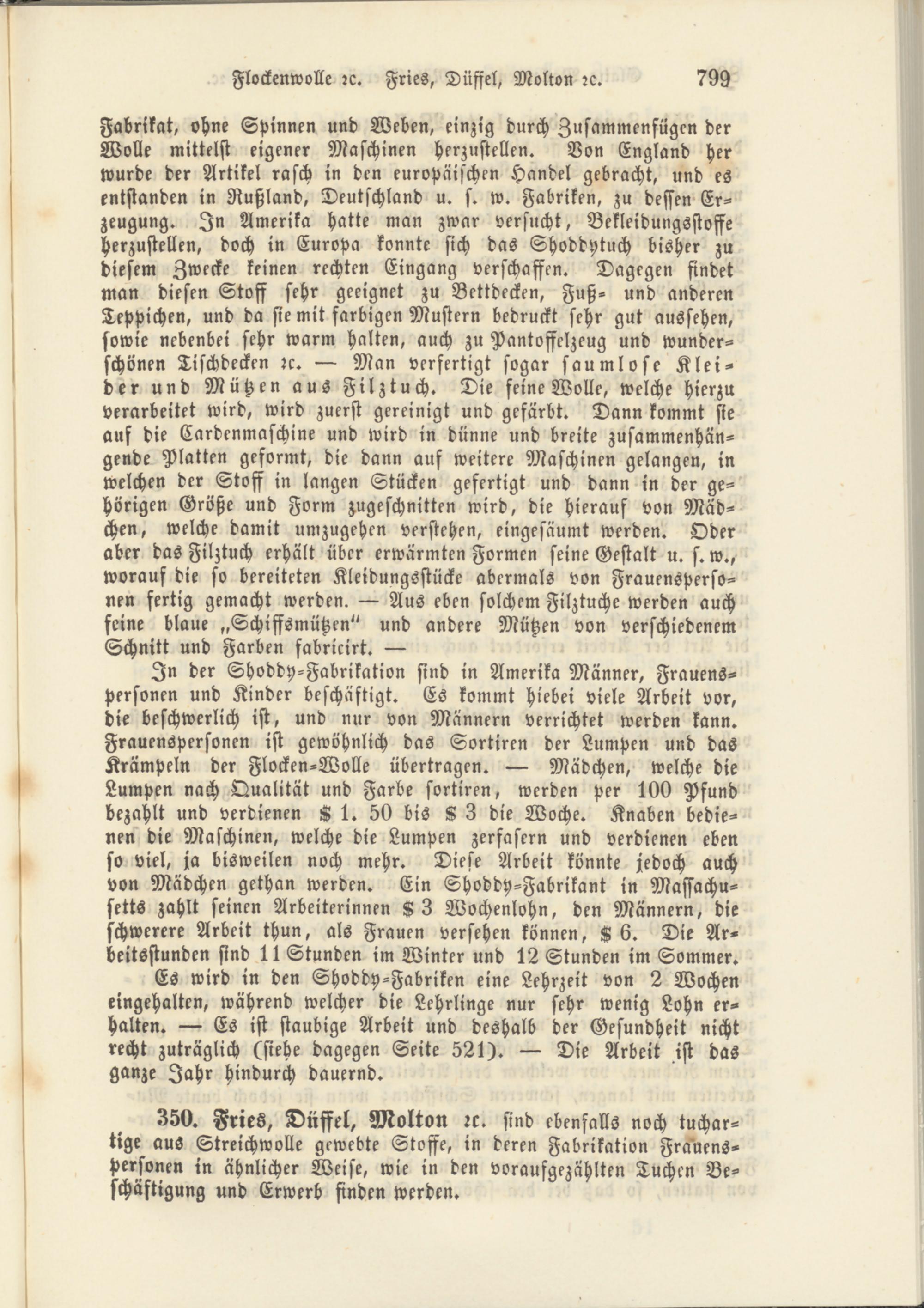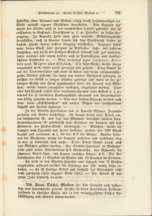 350. Fries, Diiffel, Molton rc. sind ebenfalls noch tuchar- tige aus Streichwolle gewebte Stoffe, in deren Fabrikation Frauenspersonen in ähnlicher Weise, wie in den voraufgezählten Tuchen Beschäftigung und Erwerb finden werden.