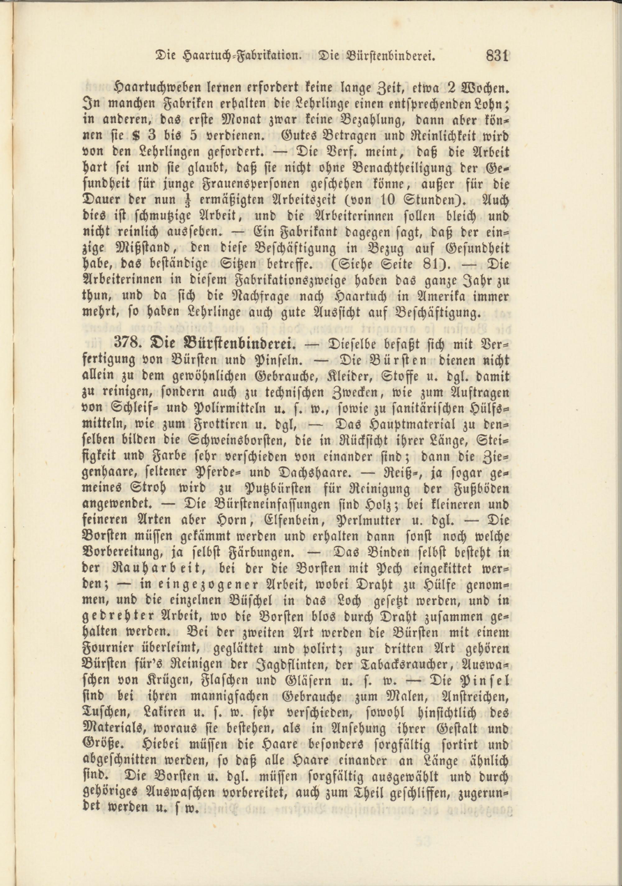 Die Haartuch-Fabrikation. Die Bürstenbinderei. 831
