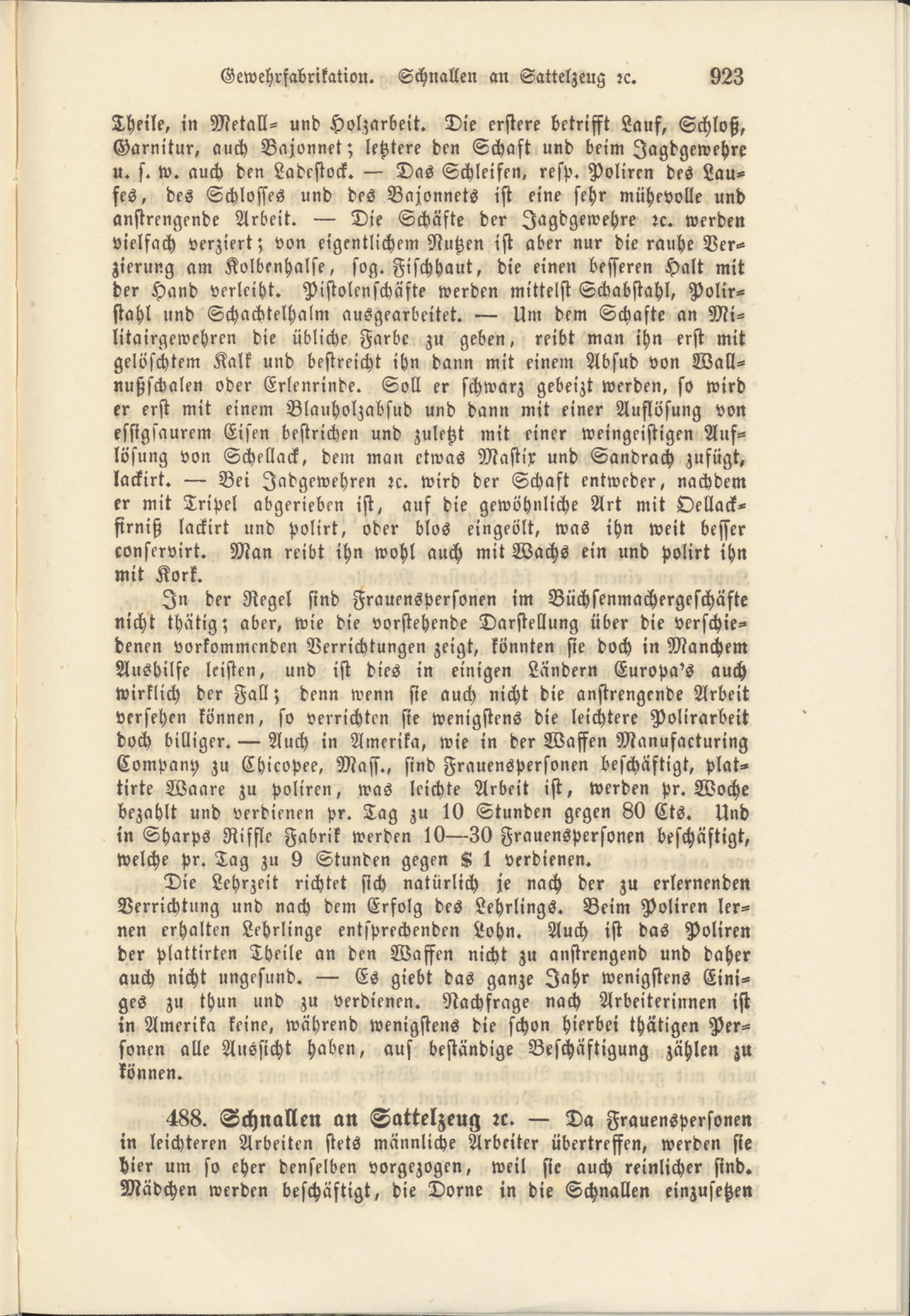 488. Schnallen an Sattelzeug rc. — Da Frauenspersonen in leichteren Arbeiten stets männliche Arbeiter übertreffen, werden sie hier um so eher denselben vorgezogen, weil sie auch reinlicher sind. Mädchen werden beschäftigt, die Dorne in die Schnallen einzusetzen