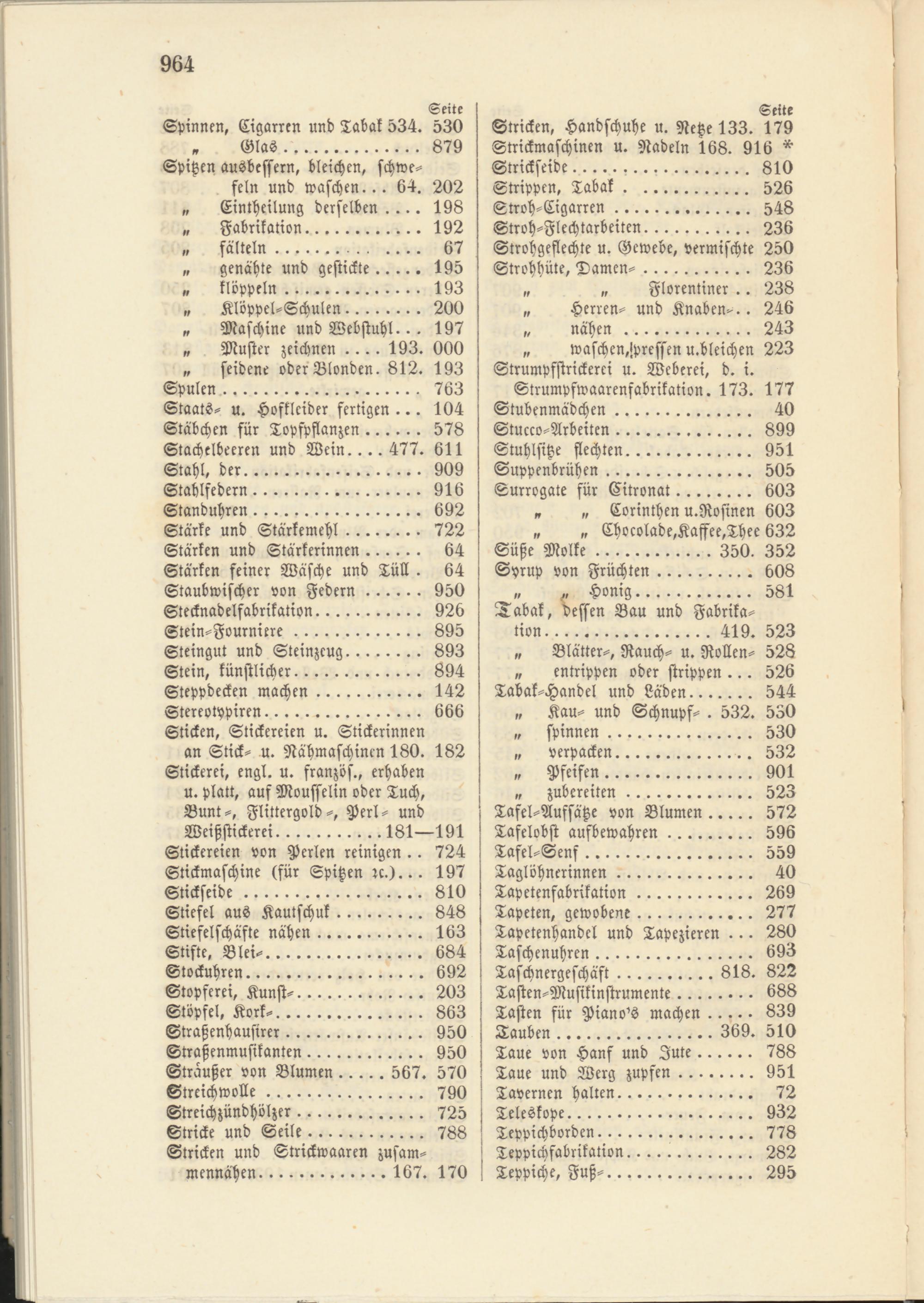 Stricken, Handschuhe u. Netze 133. 179 Strickmaschinen u. Nadeln 168. 916 *