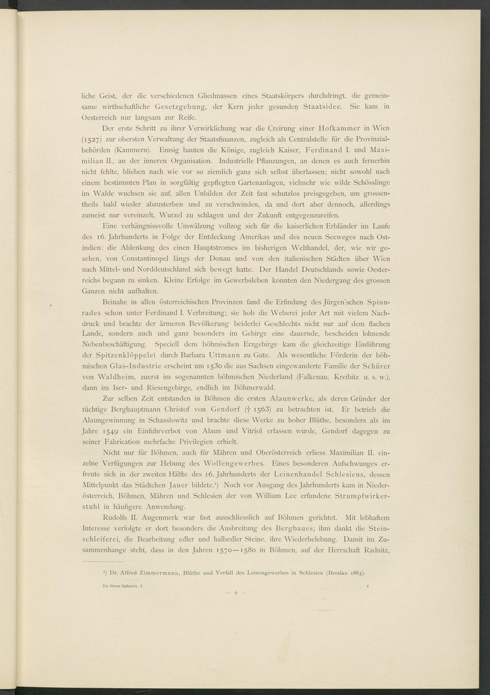 x ) Dr. Alfred Zimmermann, Blüthe und Verfall des Leinengewerbes in Schlesien (Breslau 1885).