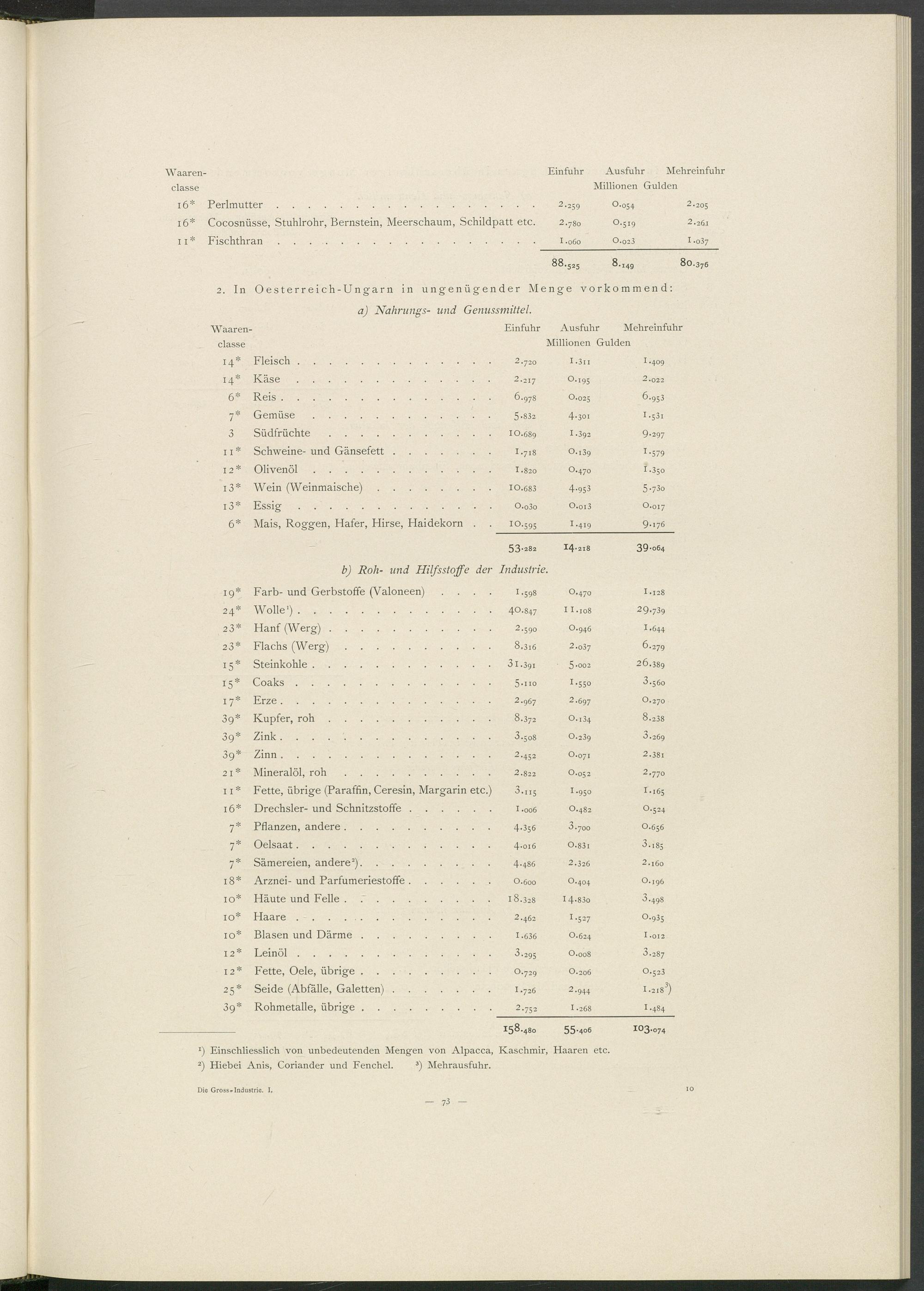 *) Einschliesslich von unbedeutenden Mengen von Alpacca, Kaschmir, Haaren etc. 2 ) Hiebei Anis, Coriander und Fenchel. 3 ) Mehrausfuhr.
