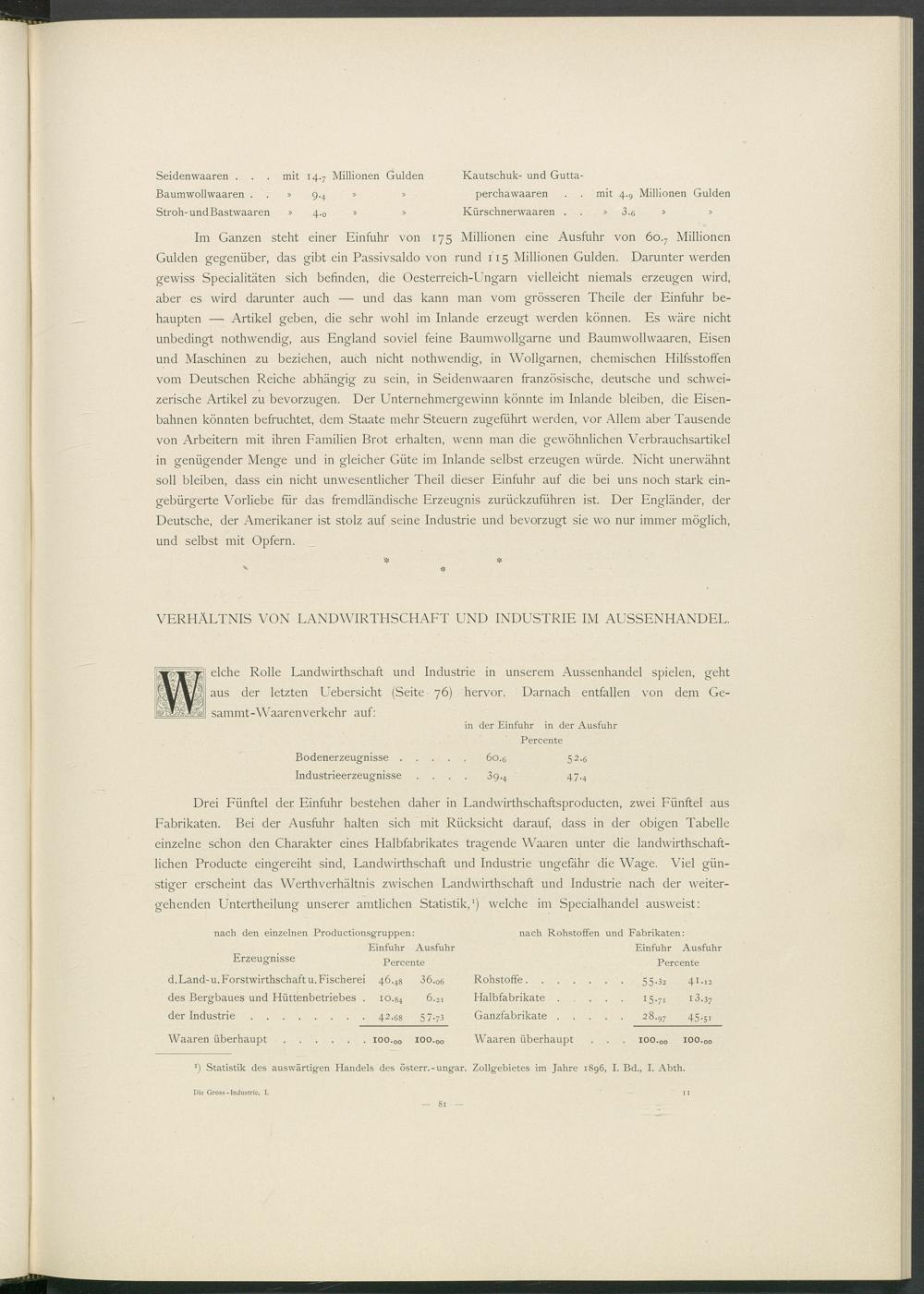VERHÄLTNIS VON LANDWIRTHSCHAFT UND INDUSTRIE IM AUSSENHANDEL.