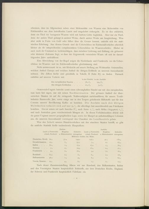 Nach dieser Zusammenstellung führen wir aus Russland, den Balkanstaaten, Italien und den Vereinigten Staaten hauptsächlich Rohstoffe, aus dem Deutschen Reiche, England, der Schweiz und Frankreich hauptsächlich Fabrikate ein.