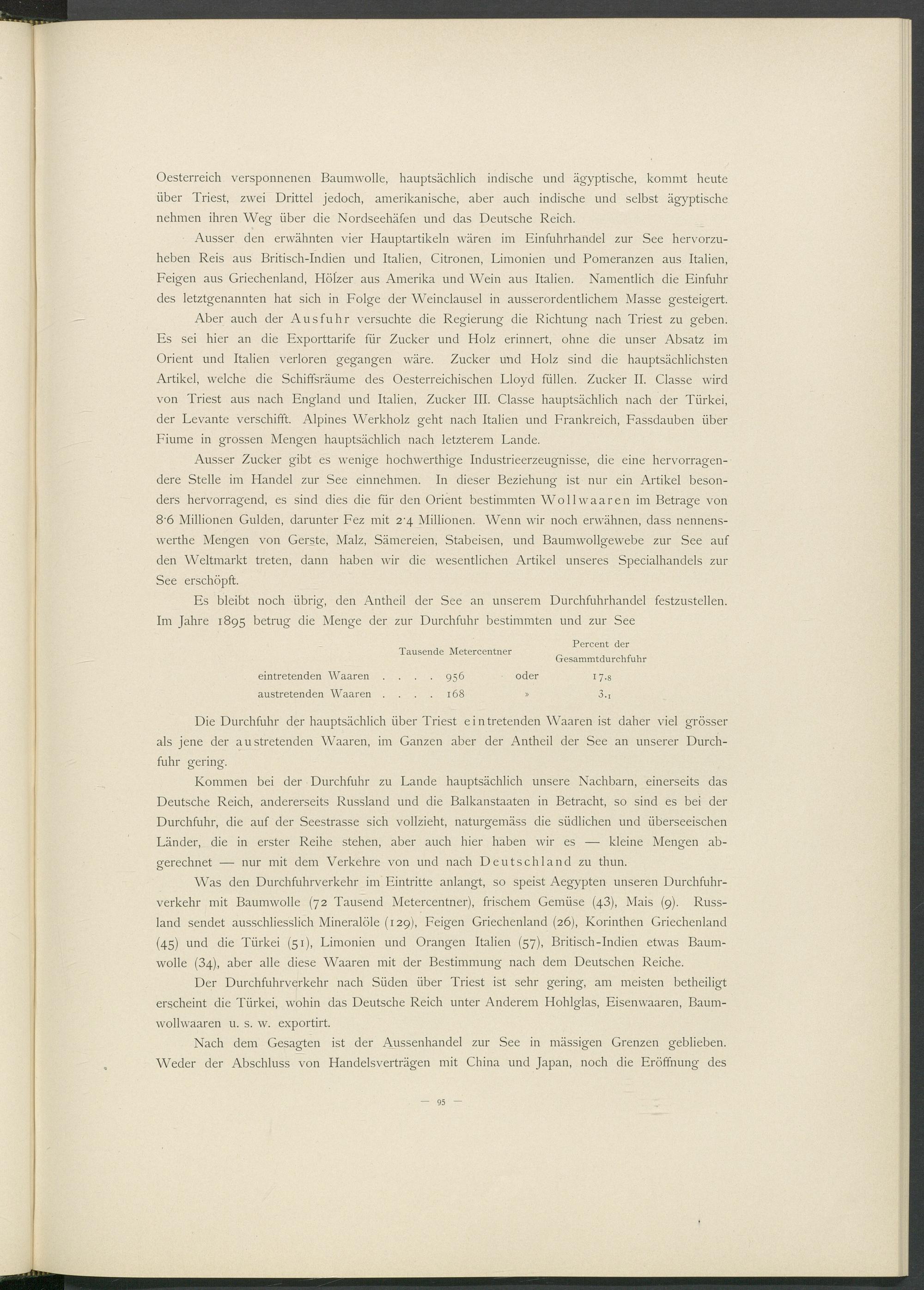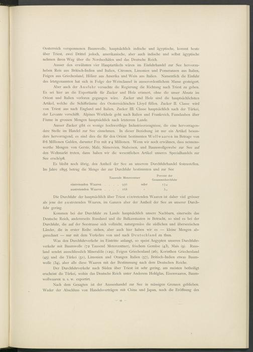 Die Durchfuhr der hauptsächlich über Triest ein tretenden Waaren ist daher viel grösser als jene der austretenden Waaren, im Ganzen aber der Antheil der See an unserer Durchfuhr gering.