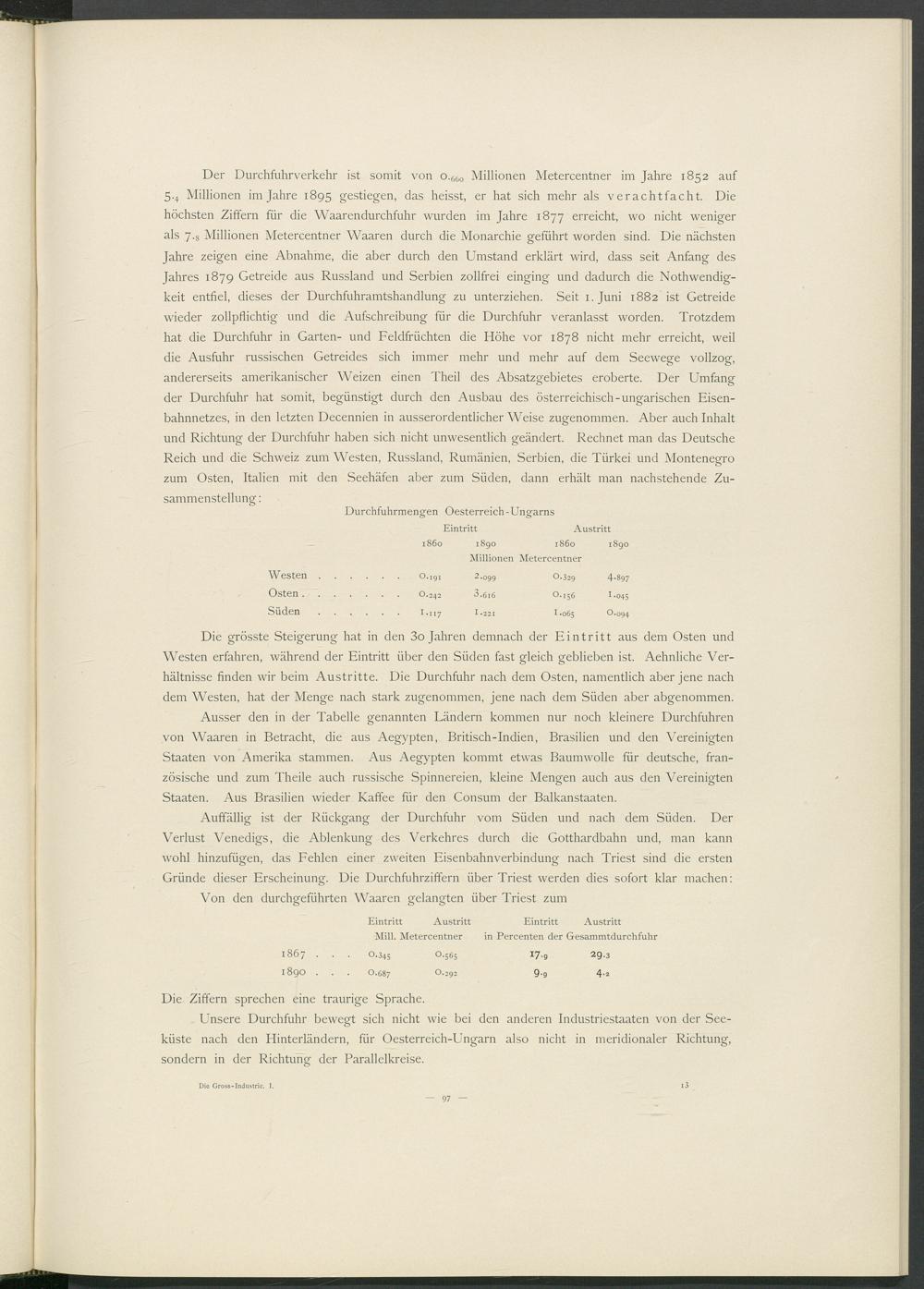 Unsere Durchfuhr bewegt sich nicht wie bei den anderen Industriestaaten von der Seeküste nach den Hinterländern, für Oesterreich-Ungarn also nicht in meridionaler Richtung, sondern in der Richtung der Parallelkreise.