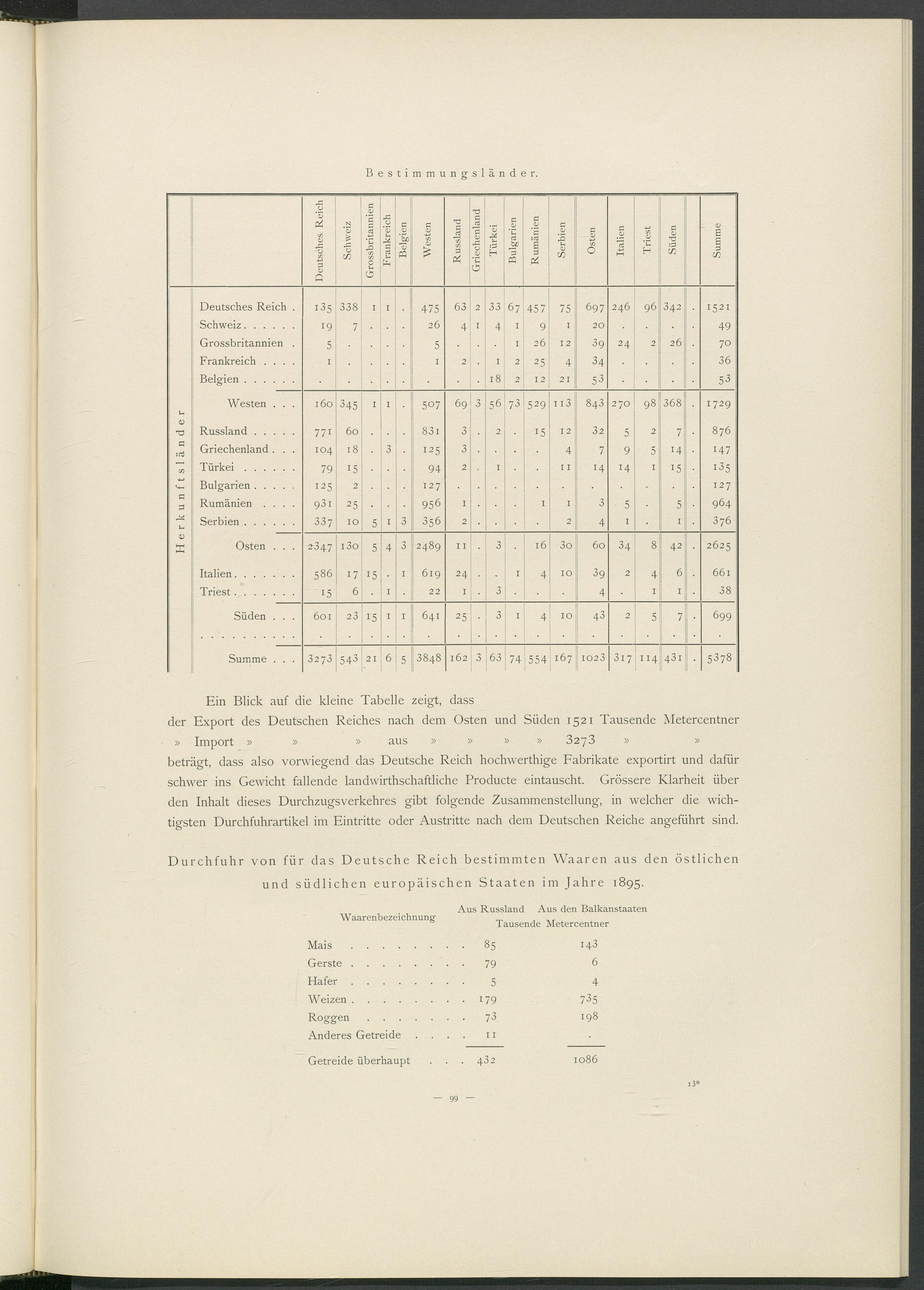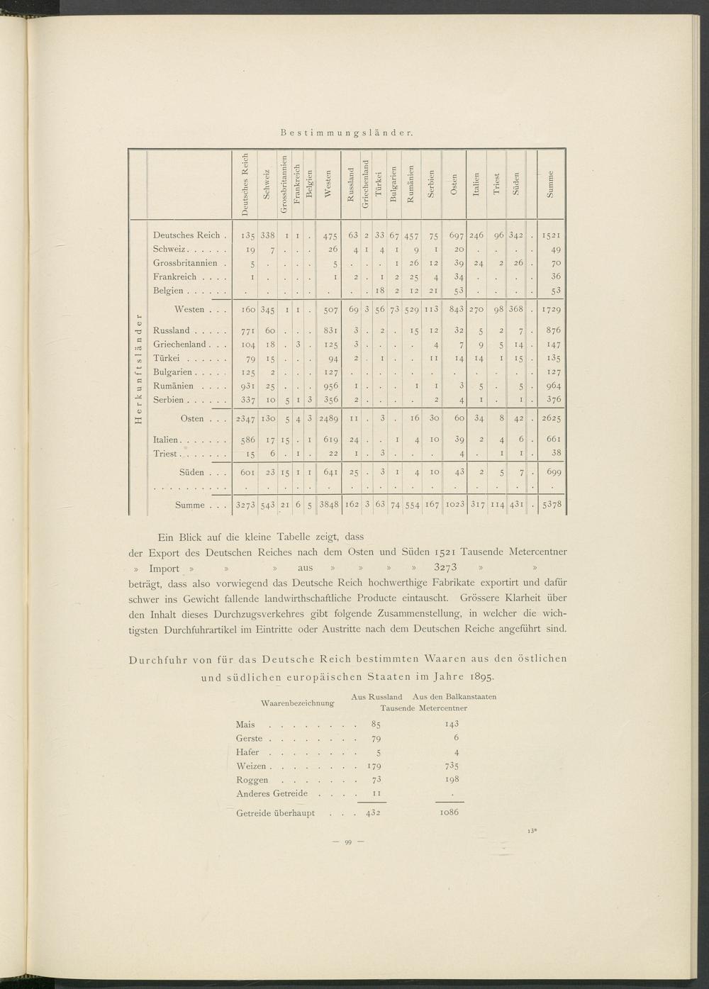 Durchfuhr von für das Deutsche Reich bestimmten Waaren aus den östlichen und südlichen europäischen Staaten im Jahre 1895.