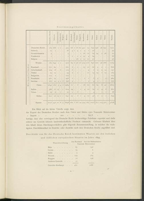 der Export des Deutschen Reiches nach dem Osten und Süden 1521 Tausende Metercentner » Import » » » aus » » » » 3273 » »