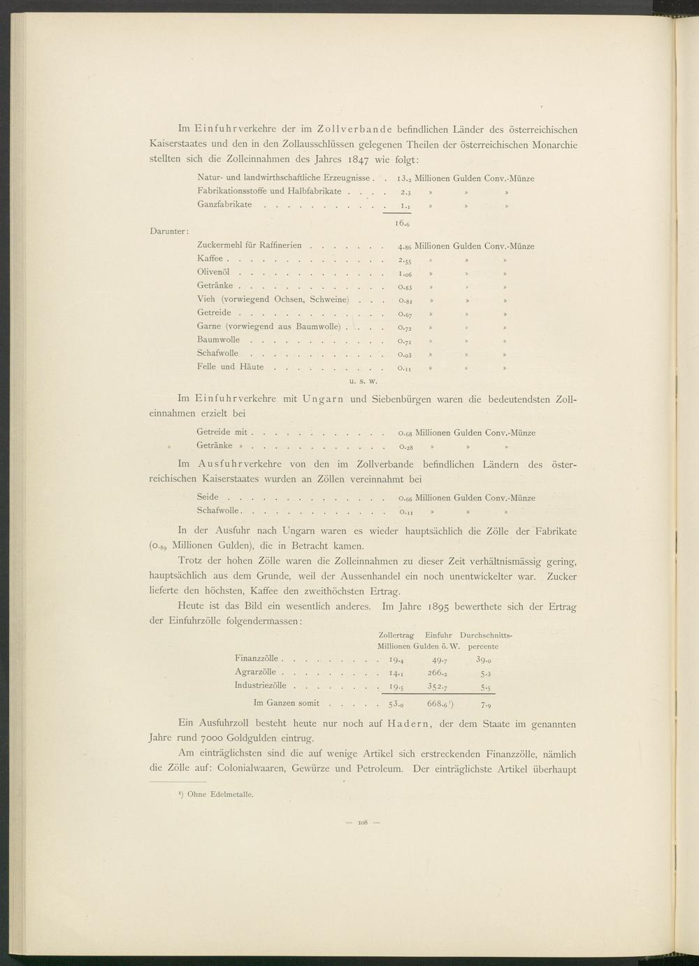 Zollertrag Einfuhr Durchschnitts- Millionen Gulden ö. W. percente