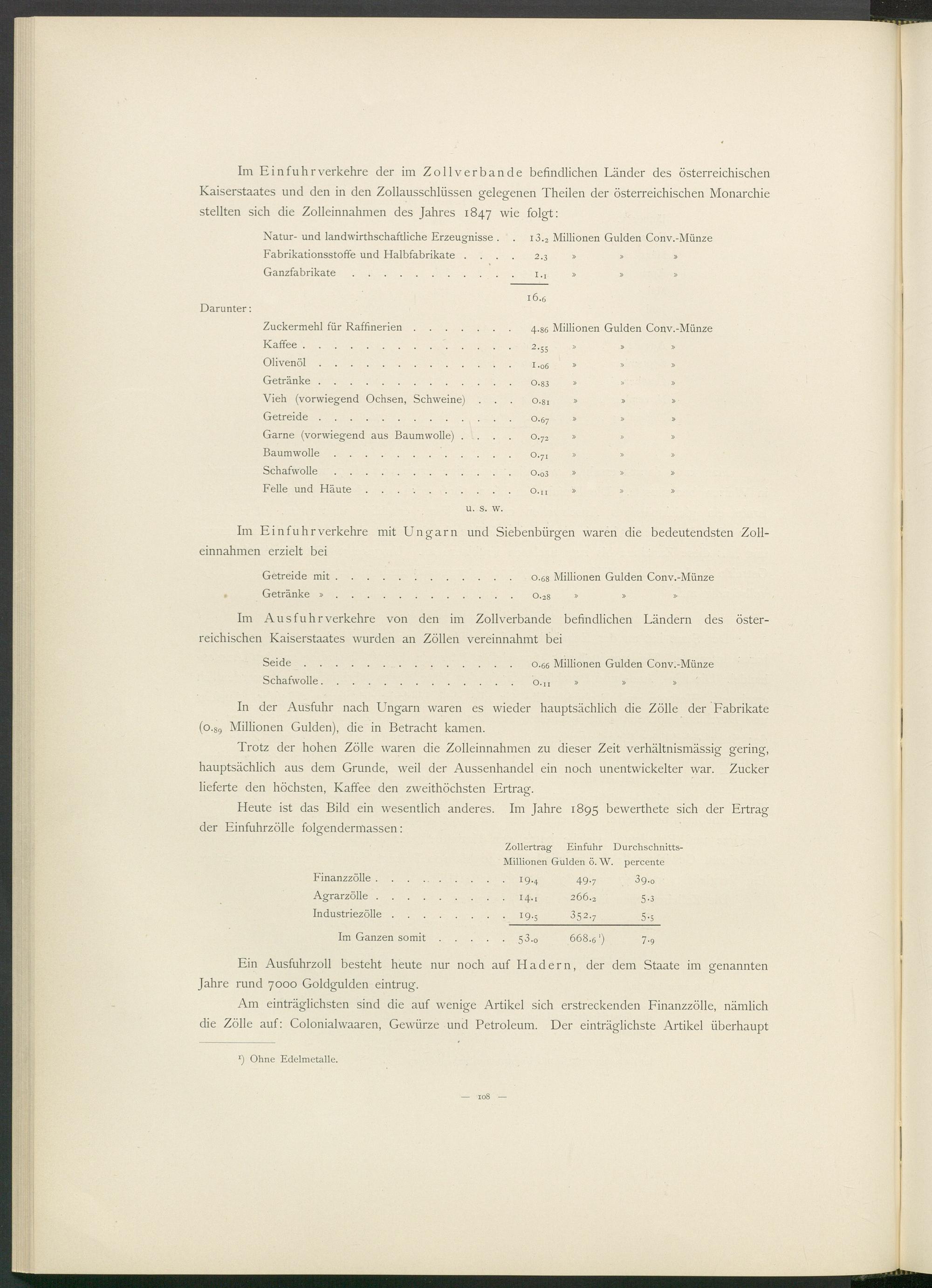 In der Ausfuhr nach Ungarn waren es wieder hauptsächlich die Zölle der Fabrikate (o. 8g Millionen Gulden), die in Betracht kamen.