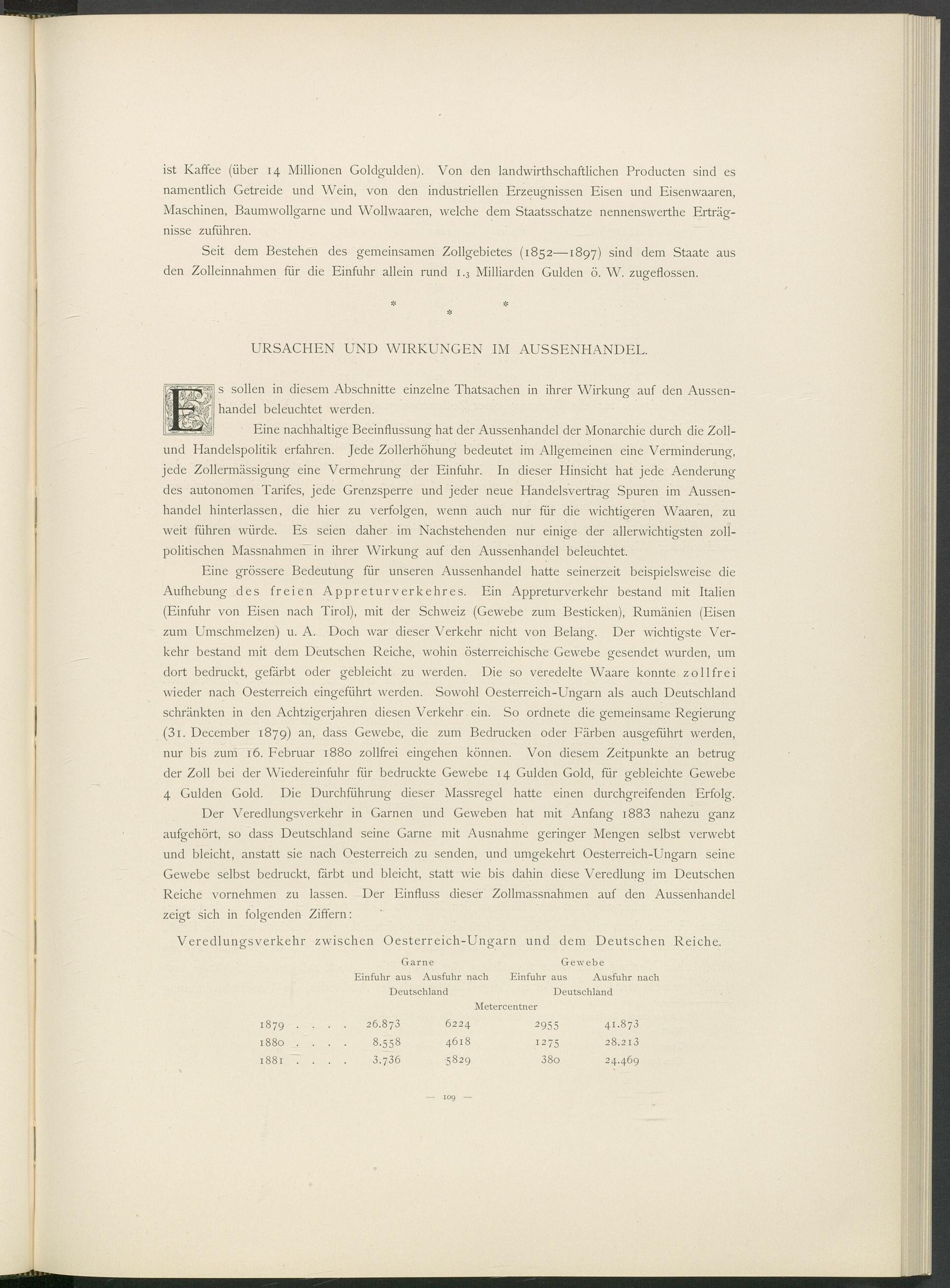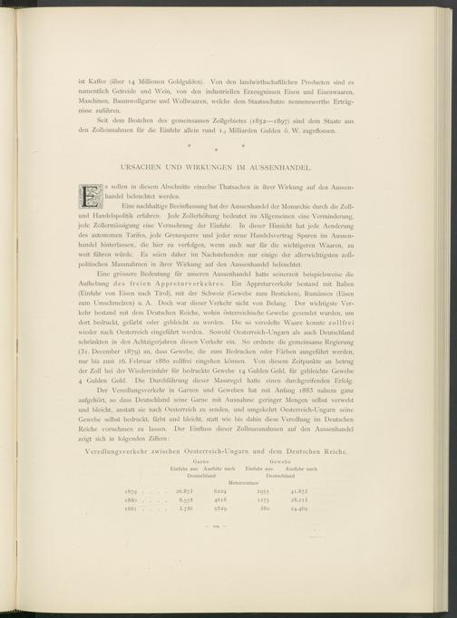 Seit dem Bestehen des gemeinsamen Zollgebietes (1852—1897) sind dem Staate aus den Zolleinnahmen für die Einfuhr allein rund 1.3 Milliarden Gulden ö. W. zugeflossen.