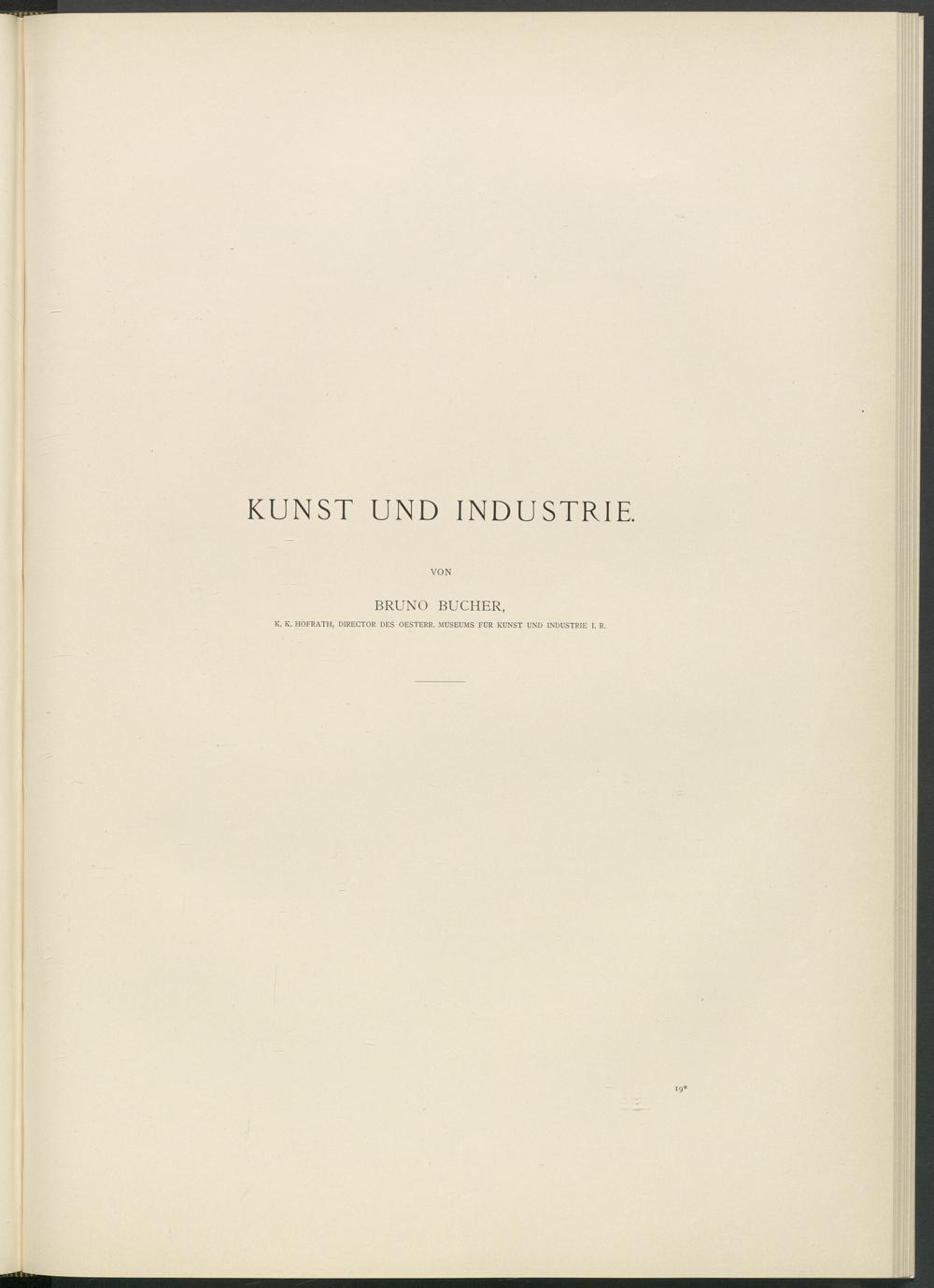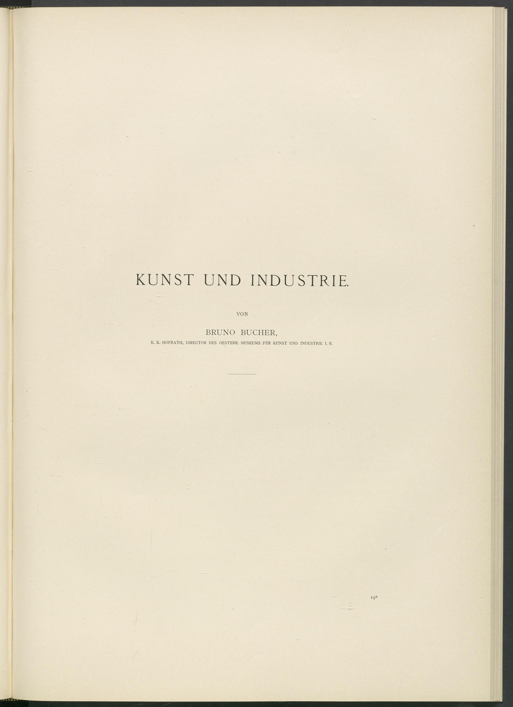 KUNST UND INDUSTRIE BRUNO BUCHER, K. K. HOFRATH, DIRECTOR DES OESTERR. MUSEUMS FÜR KUNST UND INDUSTRIE I. R.