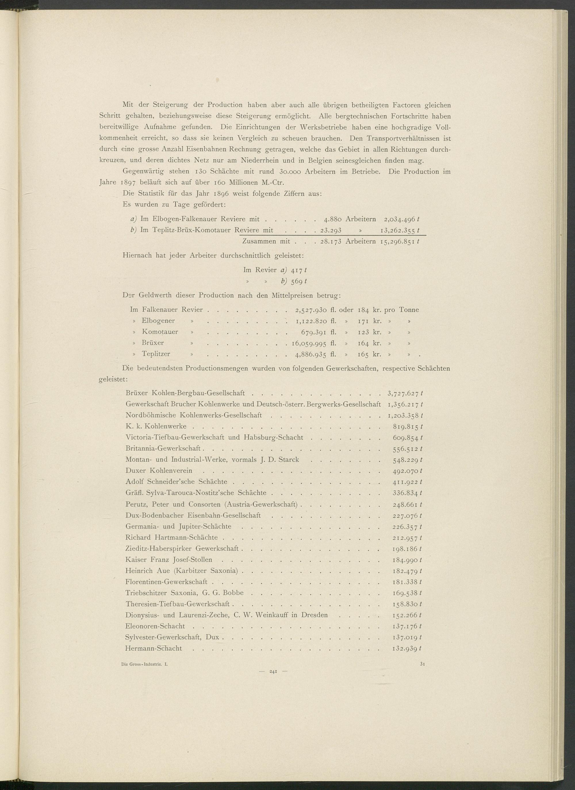 Die bedeutendsten Productionsmengen wurden von folgenden Gewerkschaften, respective Schächten geleistet: