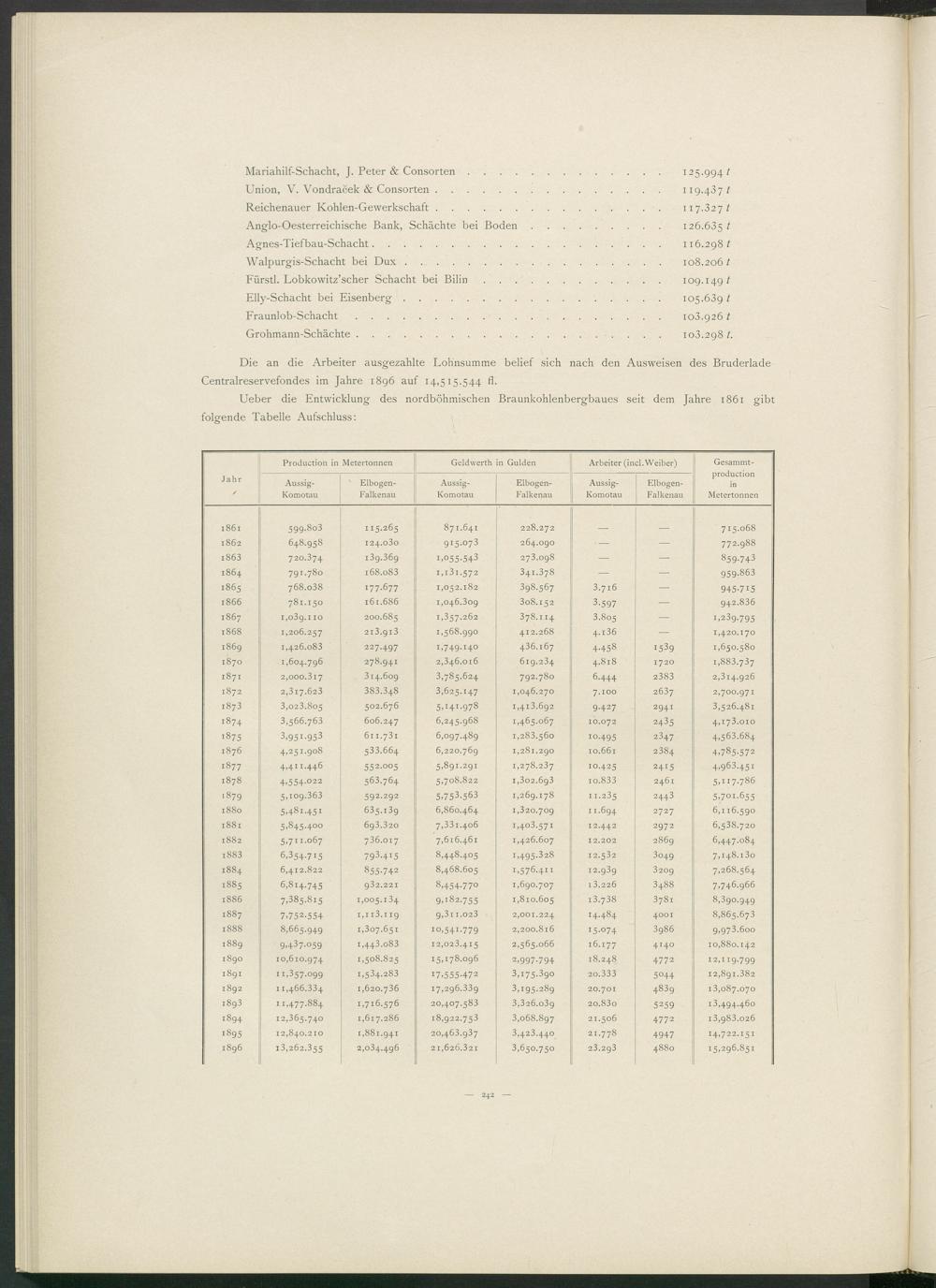 Ueber die Entwicklung des nordböhmischen Braunkohlenbergbaues seit dem Jahre 1861 gibt folgende Tabelle Aufschluss:
