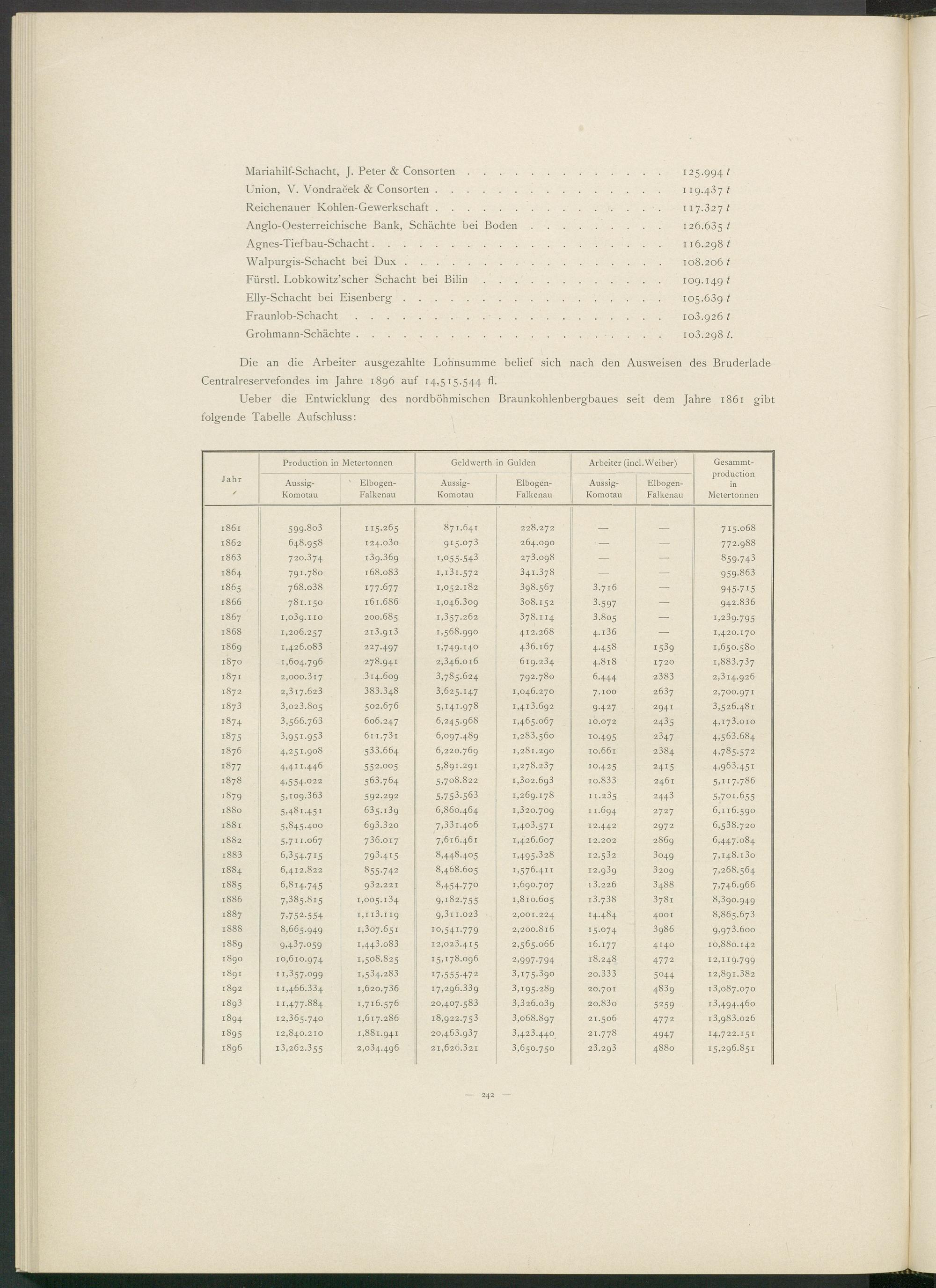 Die an die Arbeiter ausgezahlte Lohnsumme belief sich nach den Ausweisen des Bruderlade Centralreservefondes im Jahre 1896 auf 14,515.544 fl.