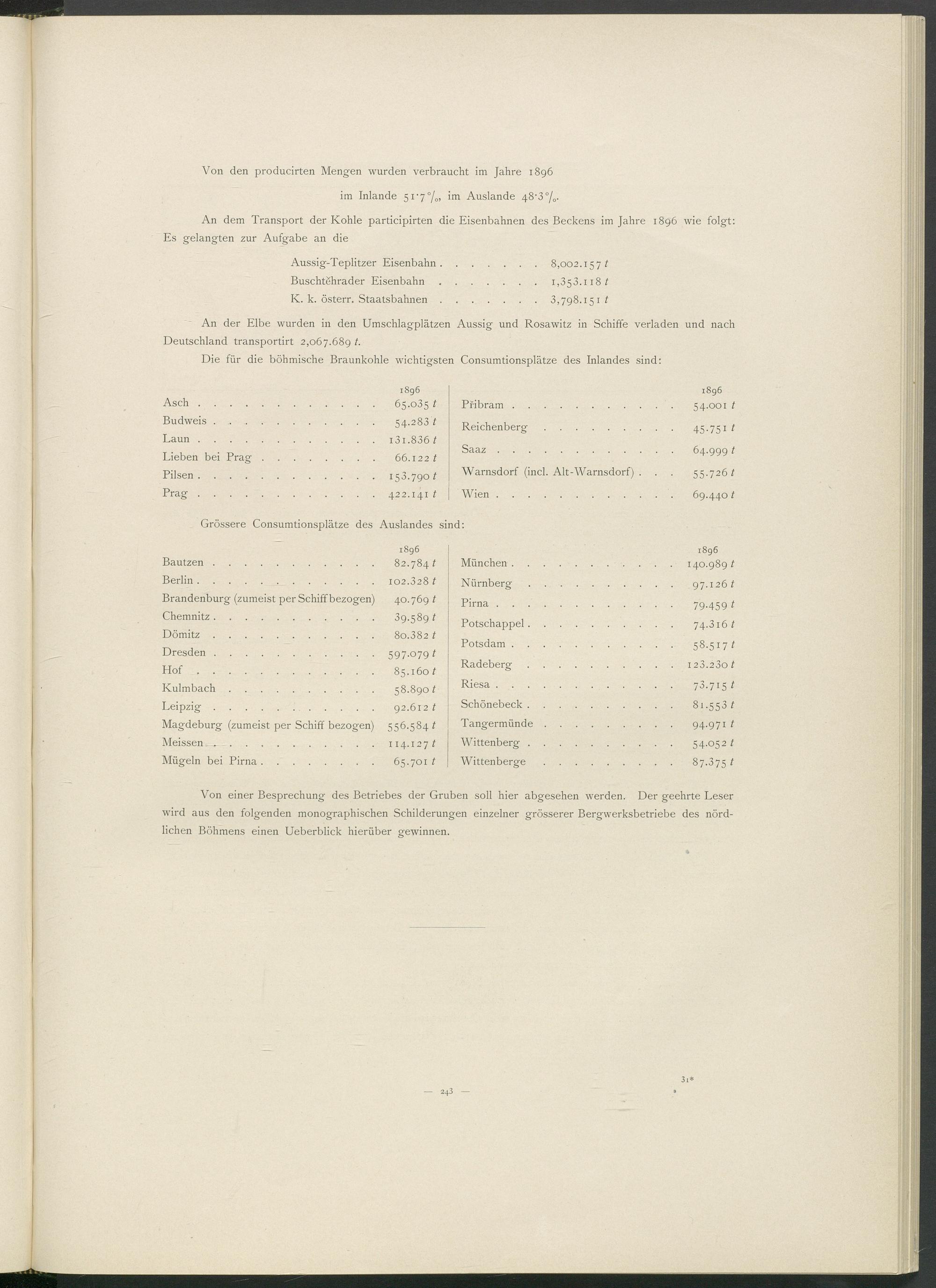 Von einer Besprechung des Betriebes der Gruben soll hier abgesehen werden