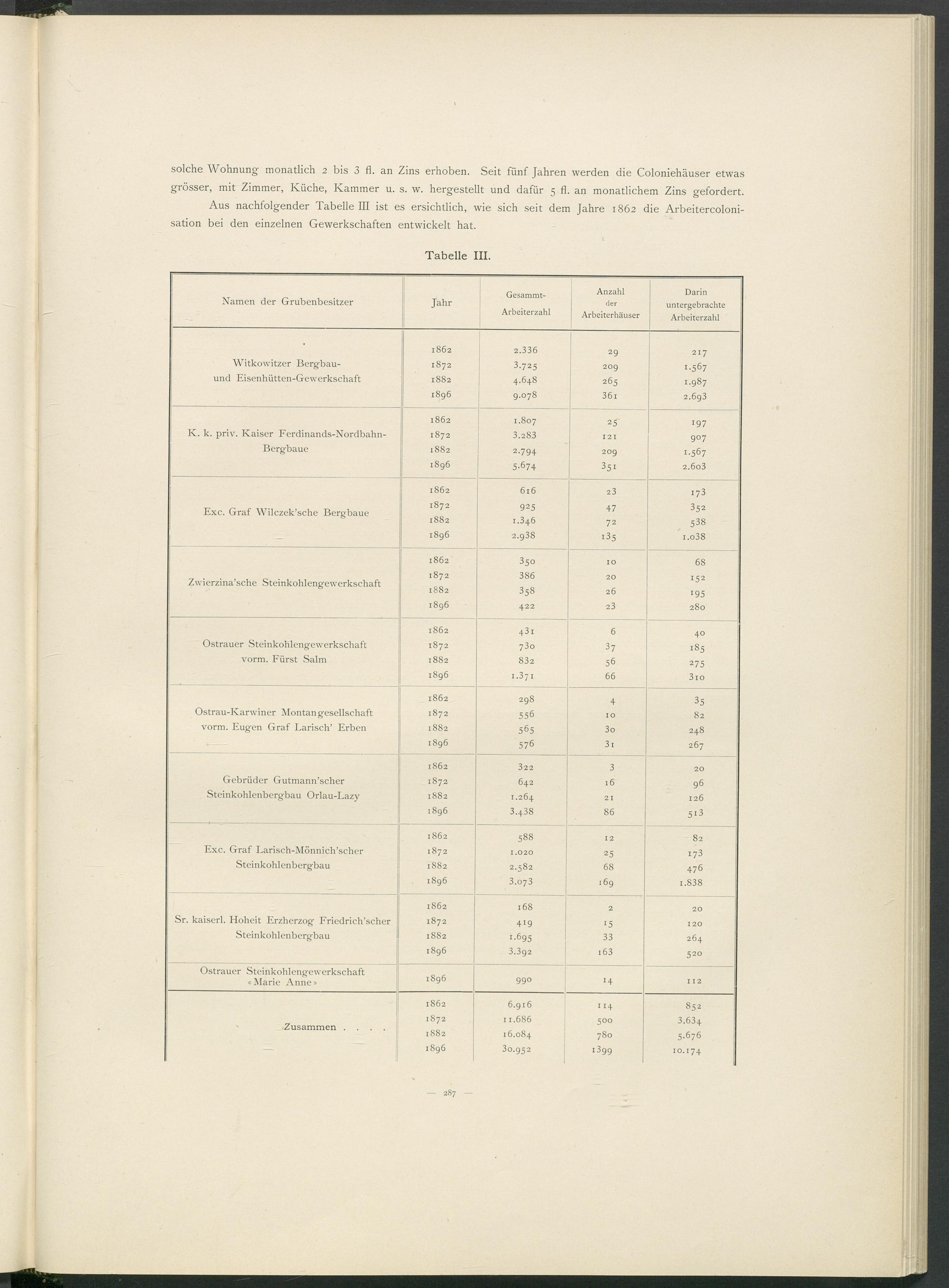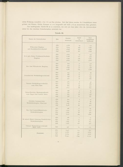 Aus nachfolgender Tabelle III ist es ersichtlich, wie sich seit dem Jahre 1862 die Arbeitercoloni- sation bei den einzelnen Gewerkschaften entwickelt hat.