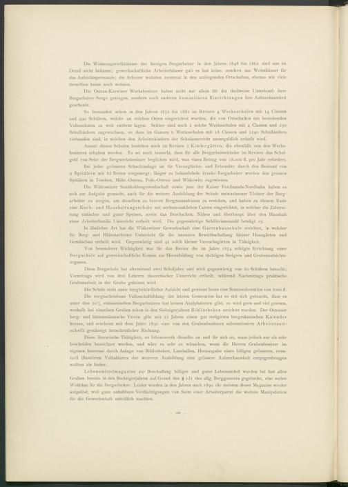 Diese literarische Thätigkeit, so lobenswerth dieselbe an und für sich ist, muss jedoch nur als sehr bescheiden bezeichnet werden, und wäre es sehr zu wünschen, wenn die Herren Grubenbesitzer im eigenen Interesse durch Anlage von Bibliotheken, Lesehallen, Herausgabe eines billigen grösseren, eventuell illustrirten Volksblattes der weiteren Ausbildung eine grössere Aufmerksamkeit entgegenbringen wollten als bisher.