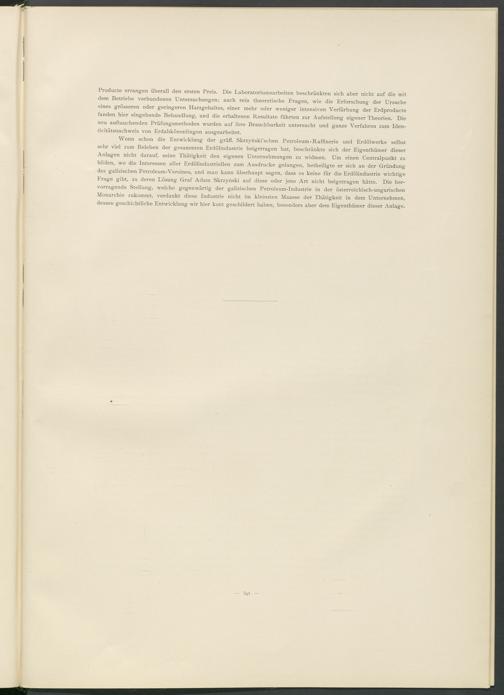 Producte errangen überall den ersten Preis. Die Laboratoriumsarbeiten beschränkten sich aber nicht auf die mit dem Betriebe verbundenen Untersuchungen; auch rein theoretische Fragen, wie die Erforschung der Ursache eines grösseren oder geringeren Harzgehaltes, einer mehr oder weniger intensiven Verfärbung der Erdproducte fanden hier eingehende Behandlung, und die erhaltenen Resultate führten zur Aufstellung eigener Theorien. Die neu auftauchenden Prüfungsmethoden wurden auf ihre Brauchbarkeit untersucht und ganze Verfahren zum Iden- ticitätsnachweis von Erdabkömmlingen ausgearbeitet.