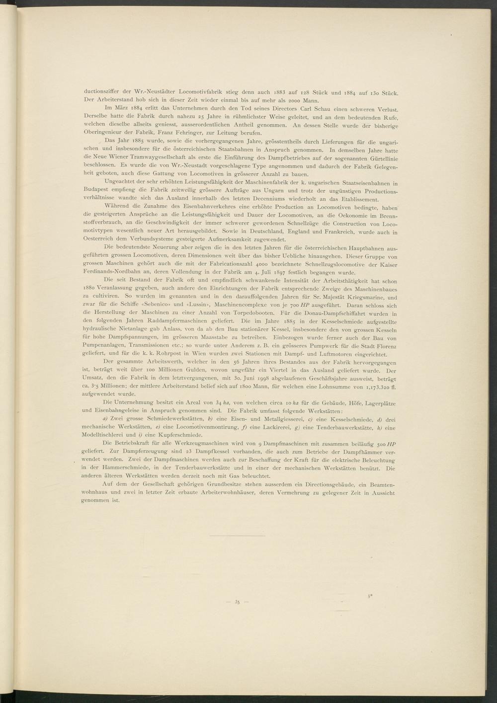 ductionsziffer der Wr.-Neustädter Locomotivfabrik stieg denn auch i883 auf 128 Stück und 1884 auf i3o Stück. Der Arbeiterstand hob sich in dieser Zeit wieder einmal bis auf mehr als 2000 Mann.