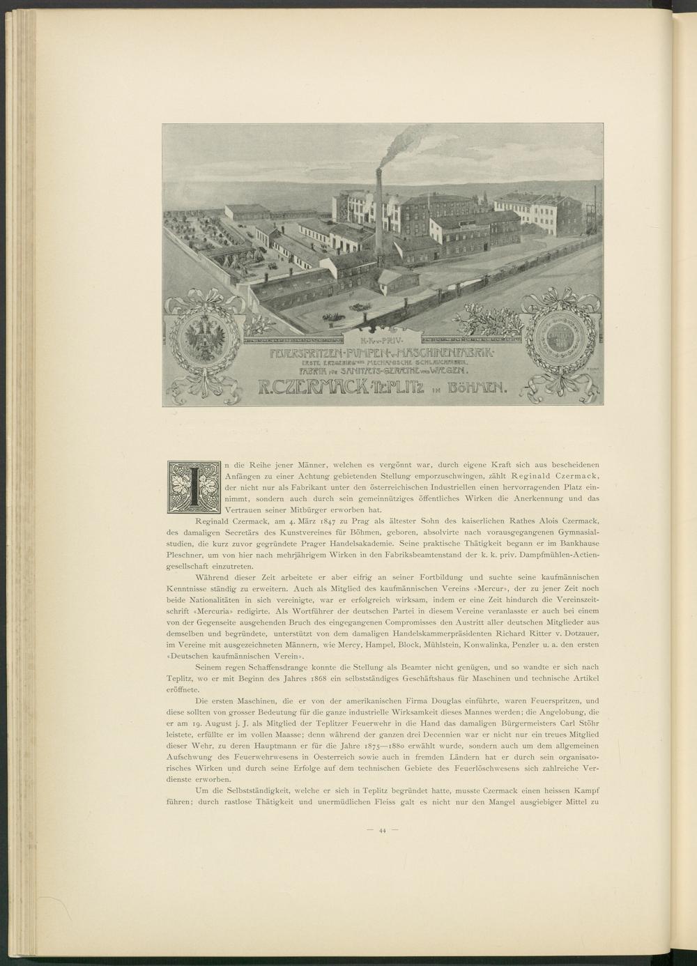 n die Reihe jener Männer, welchen es vergönnt war, durch eigene Kraft sich aus bescheidenen Anfängen zu einer Achtung gebietenden Stellung emporzuschwingen, zählt Reginald Czermack, der nicht nur als Fabrikant unter den österreichischen Industriellen einen hervorragenden Platz einnimmt, sondern auch durch sein gemeinnütziges öffentliches Wirken die Anerkennung und das Vertrauen seiner Mitbürger erworben hat.