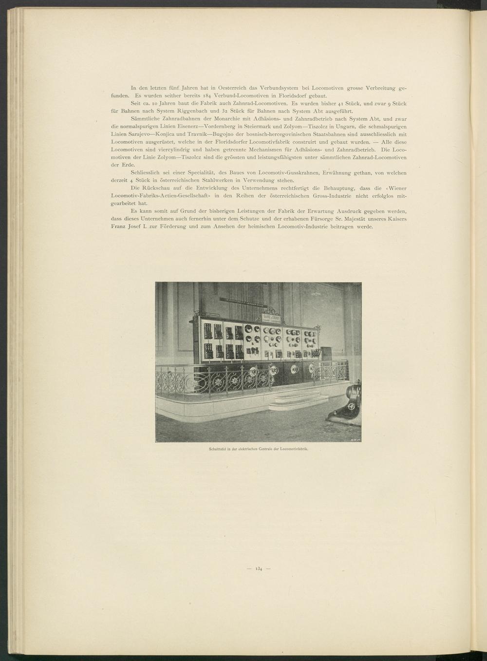 Es kann somit auf Grund der bisherigen Leistungen der Fabrik der Erwartung Ausdruck gegeben werden, dass dieses Unternehmen auch fernerhin unter dem Schutze und der erhabenen Fürsorge Sr. Majestät unseres Kaisers Franz Josef I. zur Förderung und zum Ansehen der heimischen Locomotiv-Industrie beitragen werde.