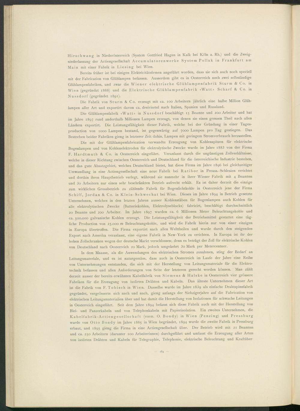 Hirschwan g in Niederösterreich (System Gottfried Hagen in Kalk bei Köln a. Rh.) und die Zweigniederlassung der Actiengesellschaft Accumulatorenwerke System PoIIak in Frankfurt am Main mit einer Fabrik in Liesing bei Wien.