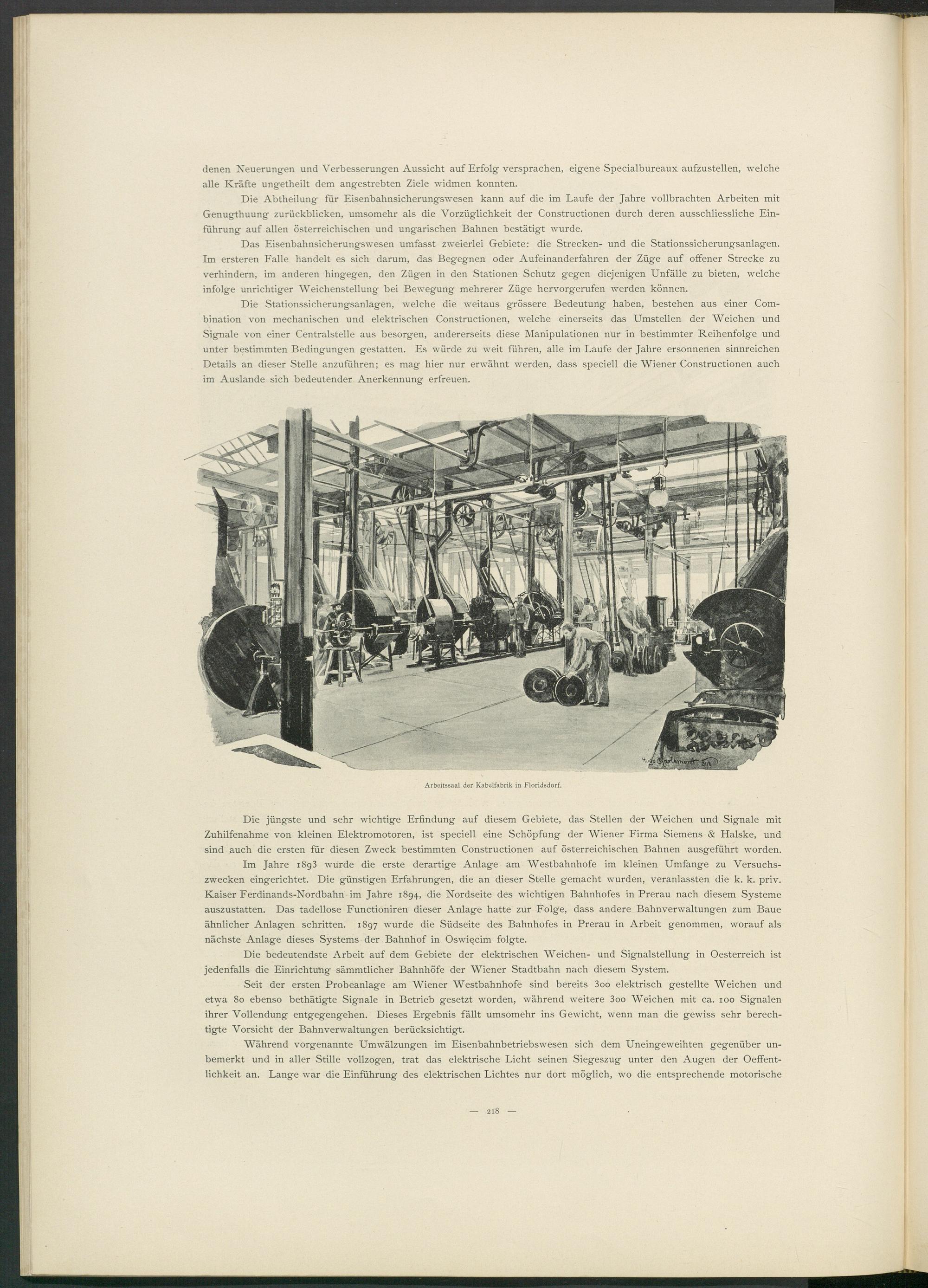 Die Abtheilung für Eisenbahnsicherungswesen kann auf die im Laufe der Jahre vollbrachten Arbeiten mit Genugthuung zurückblicken, umsomehr als die Vorzüglichkeit der Constructionen durch deren ausschliessliche Einführung auf allen österreichischen und ungarischen Bahnen bestätigt wurde.