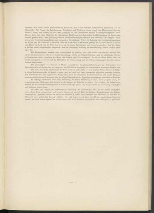 Die grossartigen von Siemens & Halske ausgeführten Hauptschachtförderungen am Hohenegger- und Albrechtschacht bei Karwin mit 170, respective 3go FTP dürften überhaupt die bedeutendsten derartigen Anlagen sein.