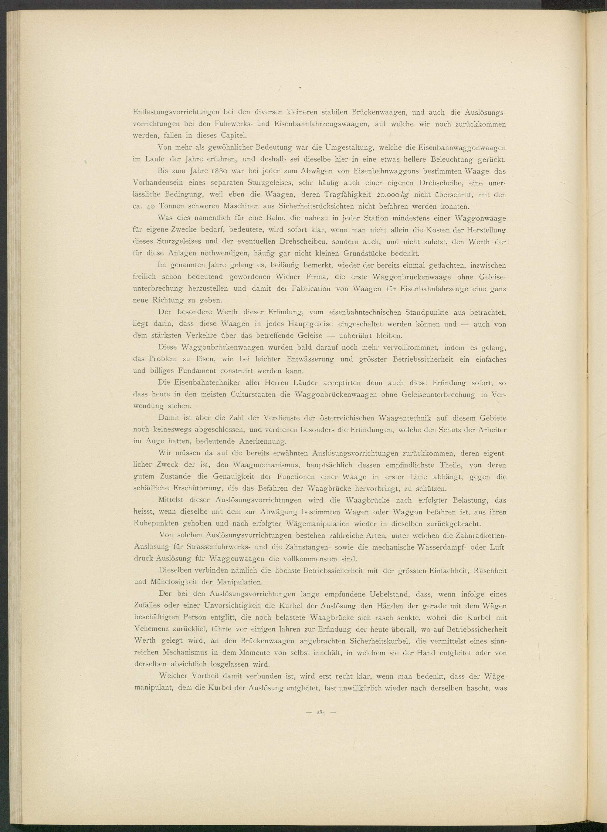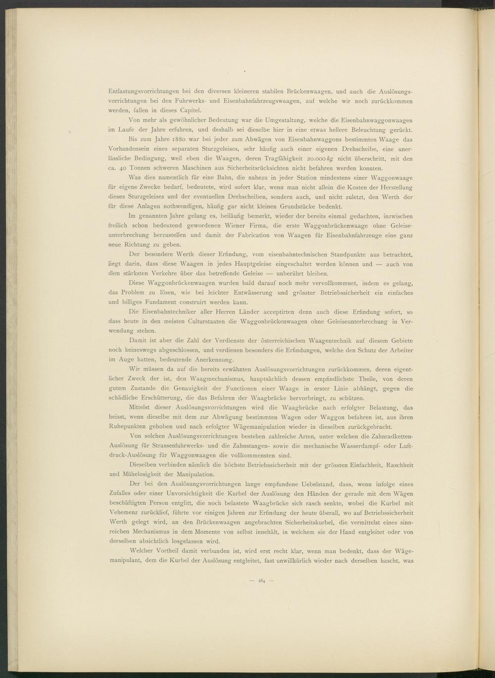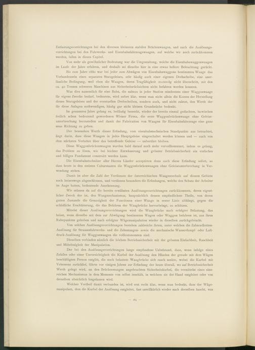 Im genannten Jahre gelang es, beiläufig bemerkt, wieder der bereits einmal gedachten, inzwischen freilich schon bedeutend gewordenen Wiener Firma, die erste Waggonbrückenwaage ohne Geleiseunterbrechung herzustellen und damit der Fabrication von Waagen für Eisenbahnfahrzeuge eine ganz neue Richtung zu geben.