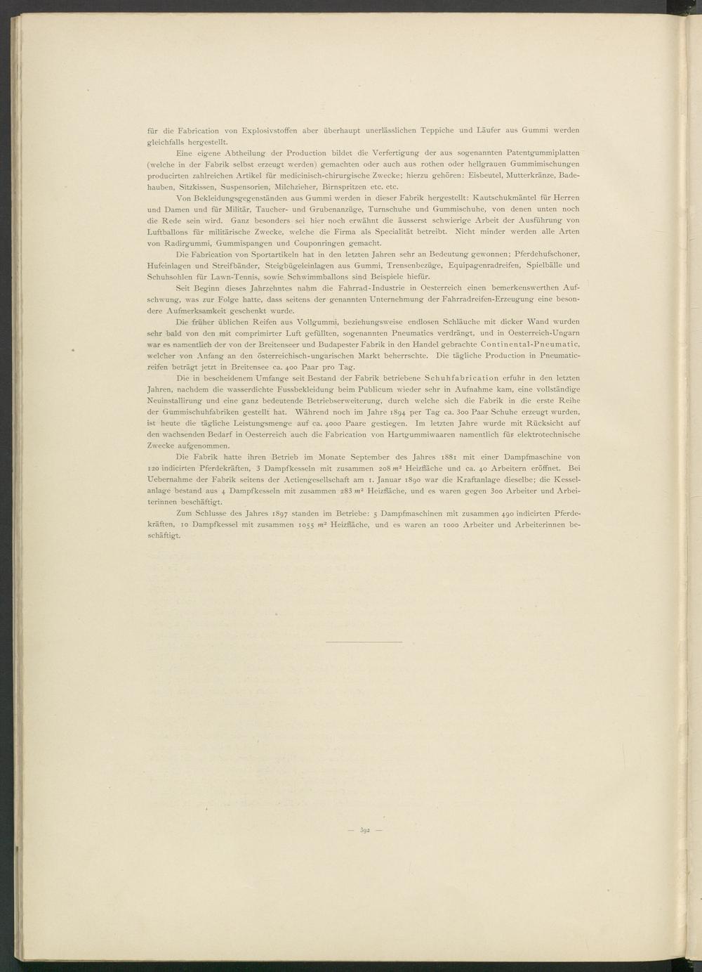 Seit Beginn dieses Jahrzehntes nahm die Fahrrad-Industrie in Oesterreich einen bemerkenswerthen Aufschwung, was zur Folge hatte, dass seitens der genannten Unternehmung der Fahrradreifen-Erzeugung eine besondere Aufmerksamkeit geschenkt wurde.